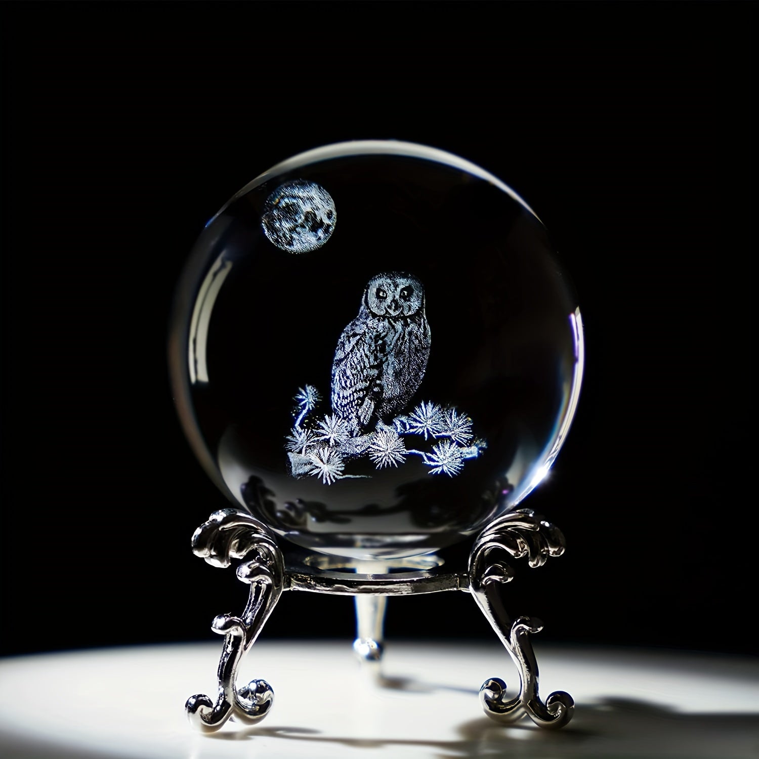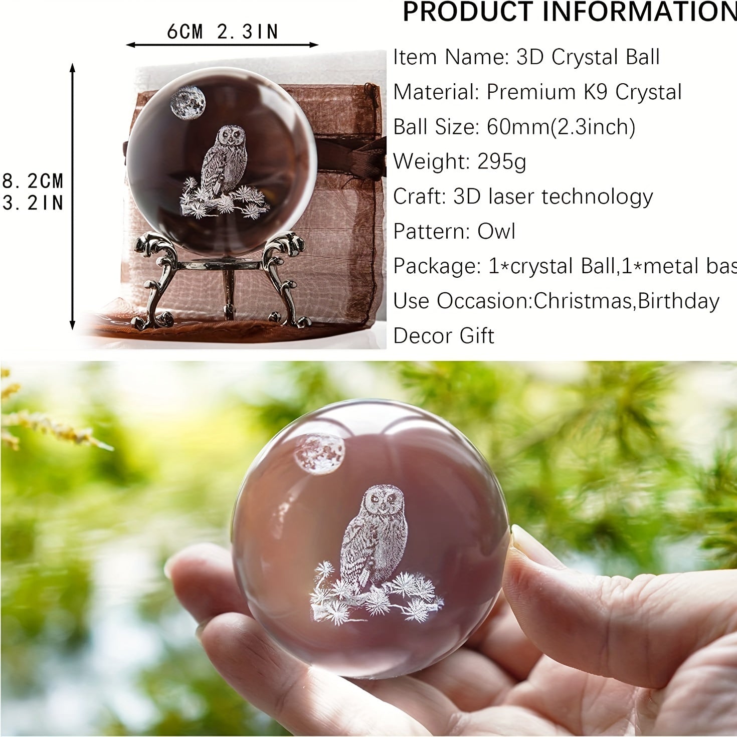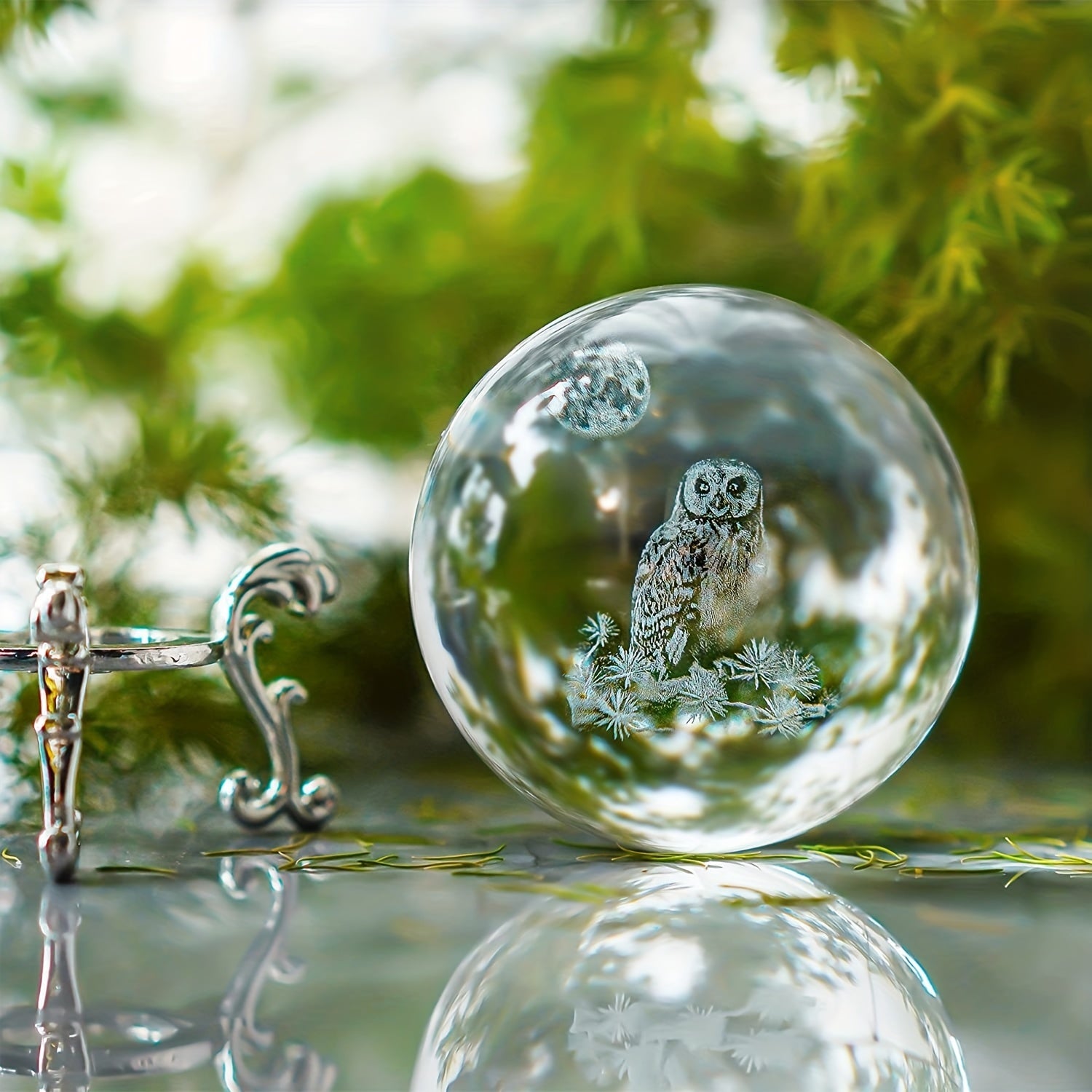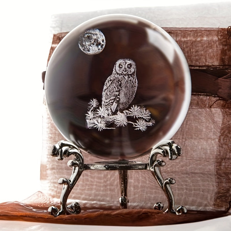 This exquisite crystal decoration ball features a 3D laser engraved owl statue, adding a touch of elegance to any space.