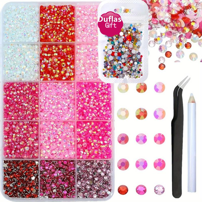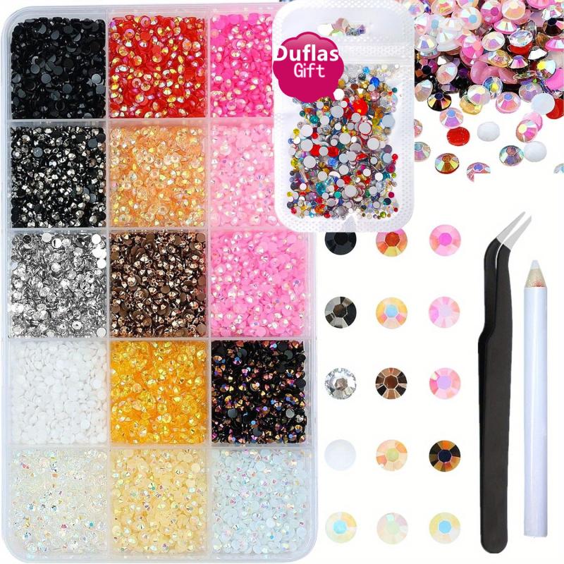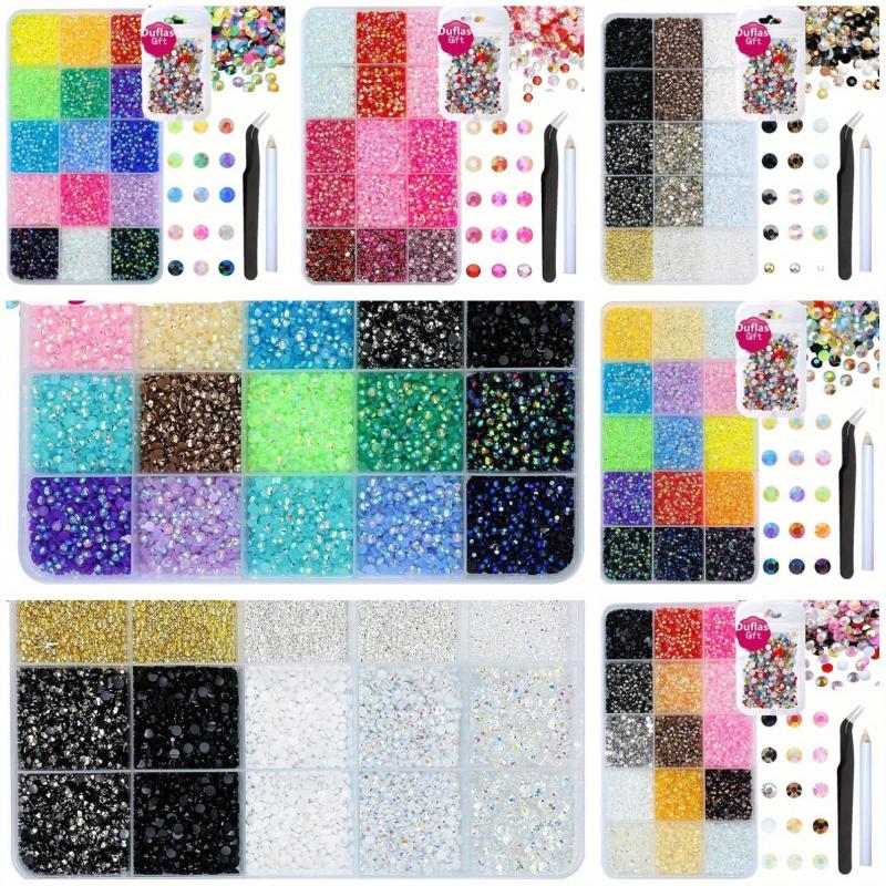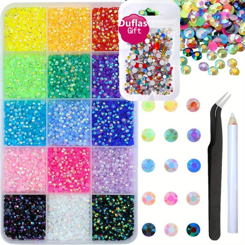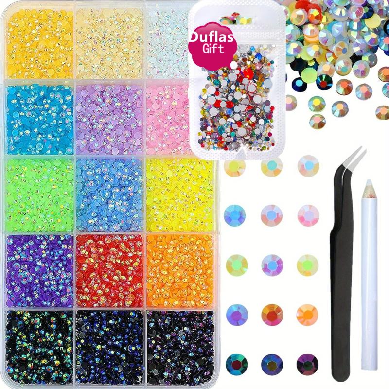 This kit includes 14000pcs of flatback AB resin rhinestones for crafting. Perfect for DIY projects like shoes, pens, nail art, tumblers, clothing decor, and more.