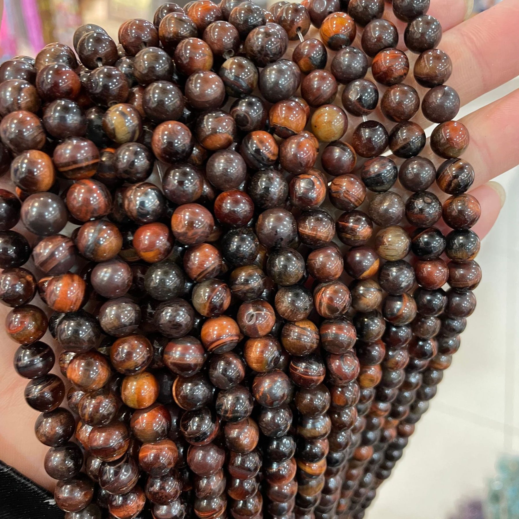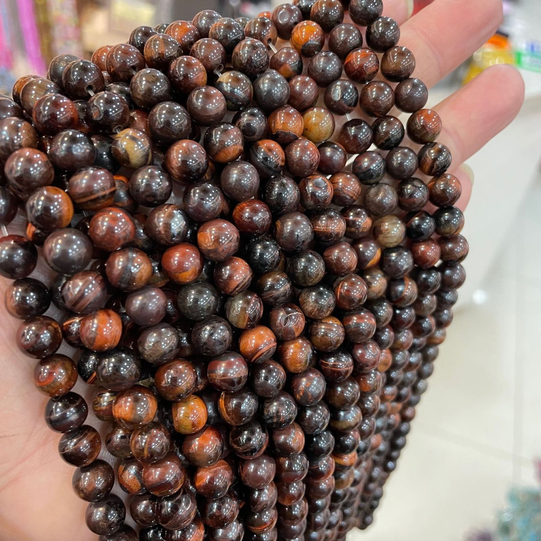 Enhance your jewelry making projects with these beautiful 4mm AB red tiger eye round beads. Perfect for necklaces, earrings, and bracelets.