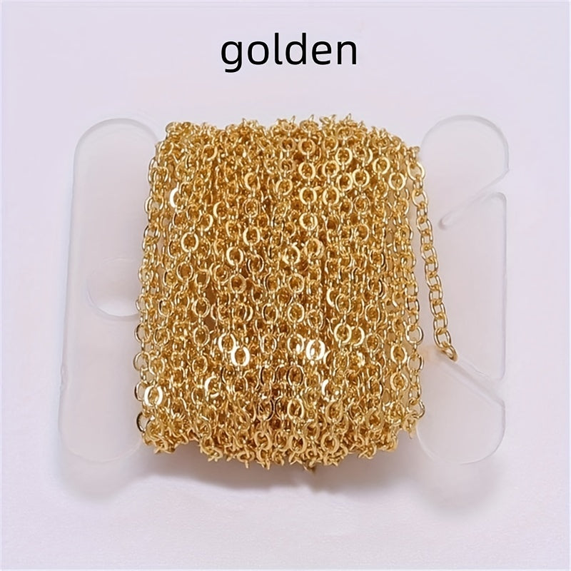This 5 yards golden necklace chain is perfect for jewelry making and DIY projects. Add a touch of elegance to your creations with this versatile chain material.