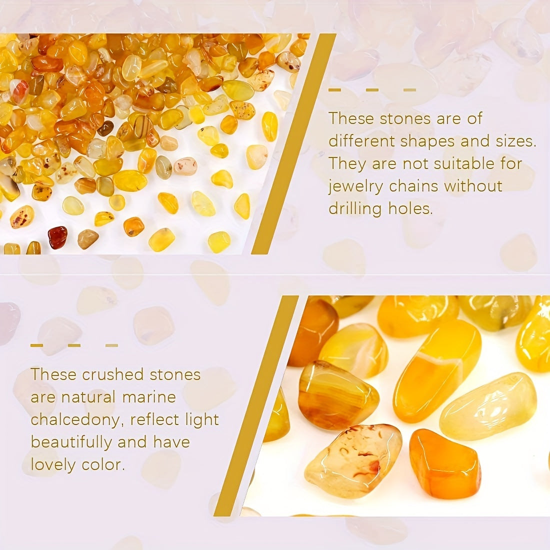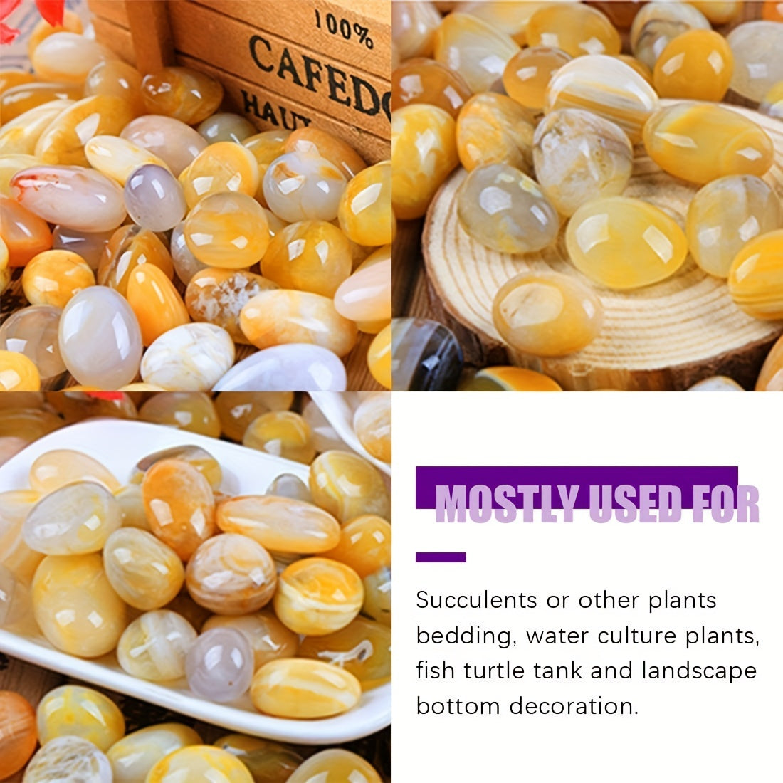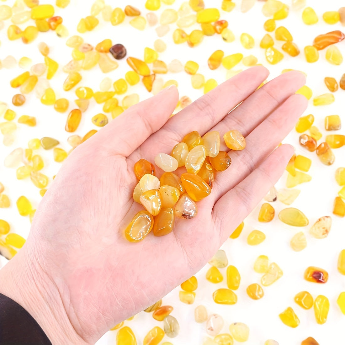 Enhance the aesthetics of your plants, succulents, and flowerpots with these healing crystals. The vibrant yellow agate chips are perfect as vase fillers, decorative rocks, and terrarium accents.