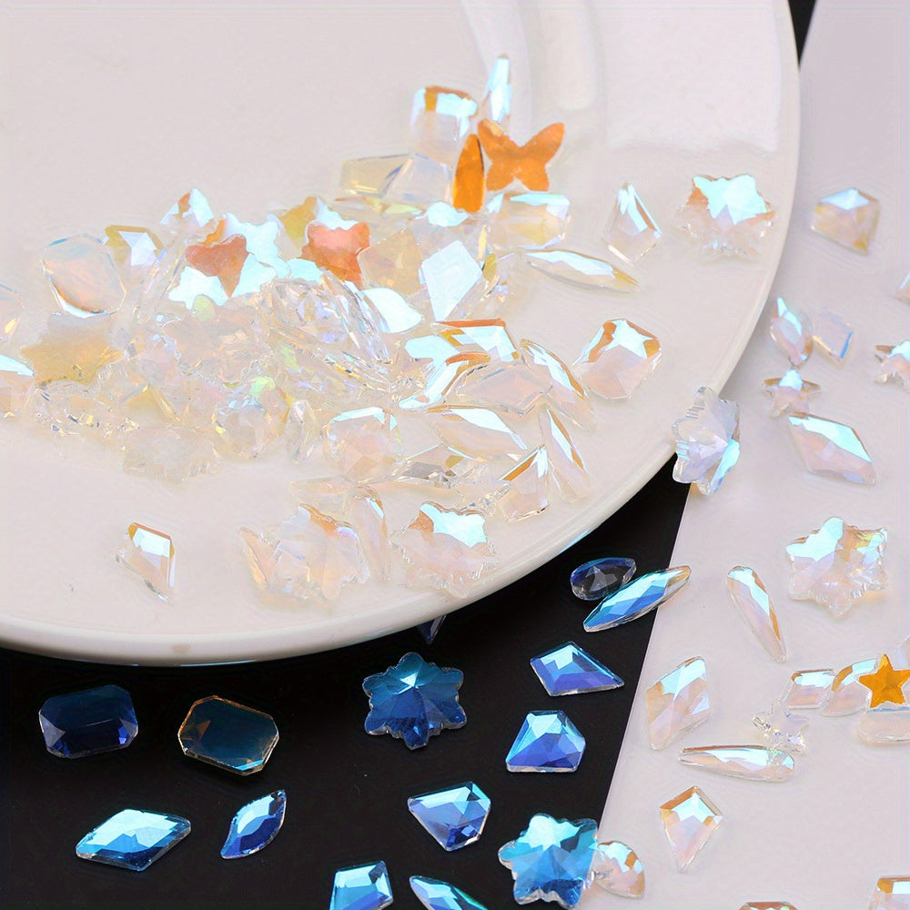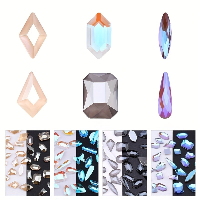 Create stunning nail art with these 50pcs faceted cutting crystal glass Aurora rhinestone nail decals. Perfect for adding a touch of glamour to your nails and creating intricate designs.