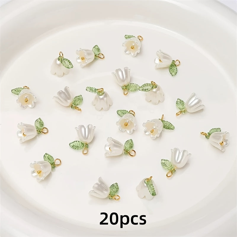 Add a touch of elegance to your jewelry creations with these multicolor acrylic lily of the valley flower charms. Perfect for bracelets, keychains, and necklaces.