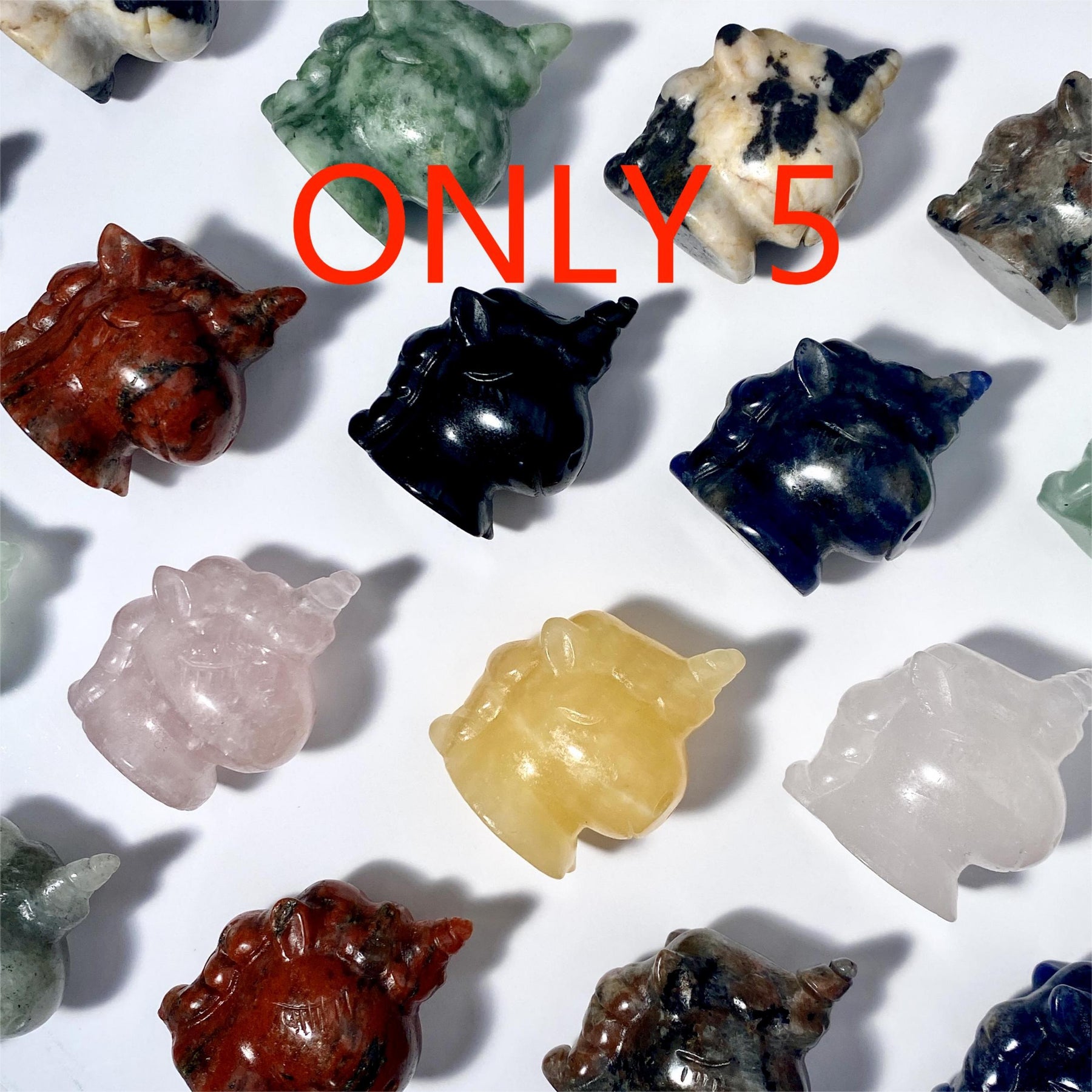 This set includes 5 random natural crystal unicorn carvings, perfect for desktop decoration. Ideal as a birthday gift for women, girlfriends, or kids. Can also be used as home or party decor.
