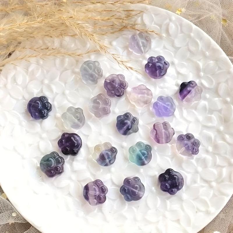 5pcs Natural Fluorite Cat Paw Charms for DIY Bracelets Necklaces