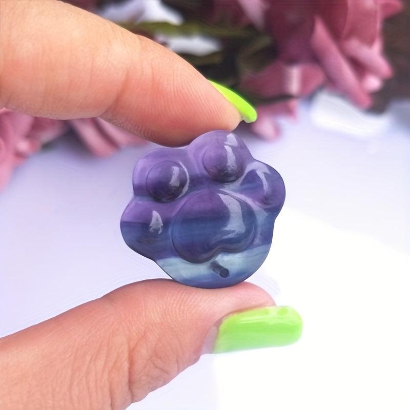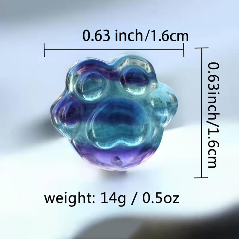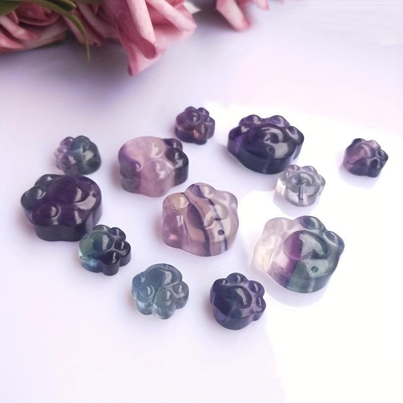 Create stunning DIY bracelets and necklaces with this set of 5 natural colored fluorite charms in the shape of cat paws. Each charm has a hole for easy threading onto ropes or chains. Bring a touch of pure Crystal energy to your accessory creations.