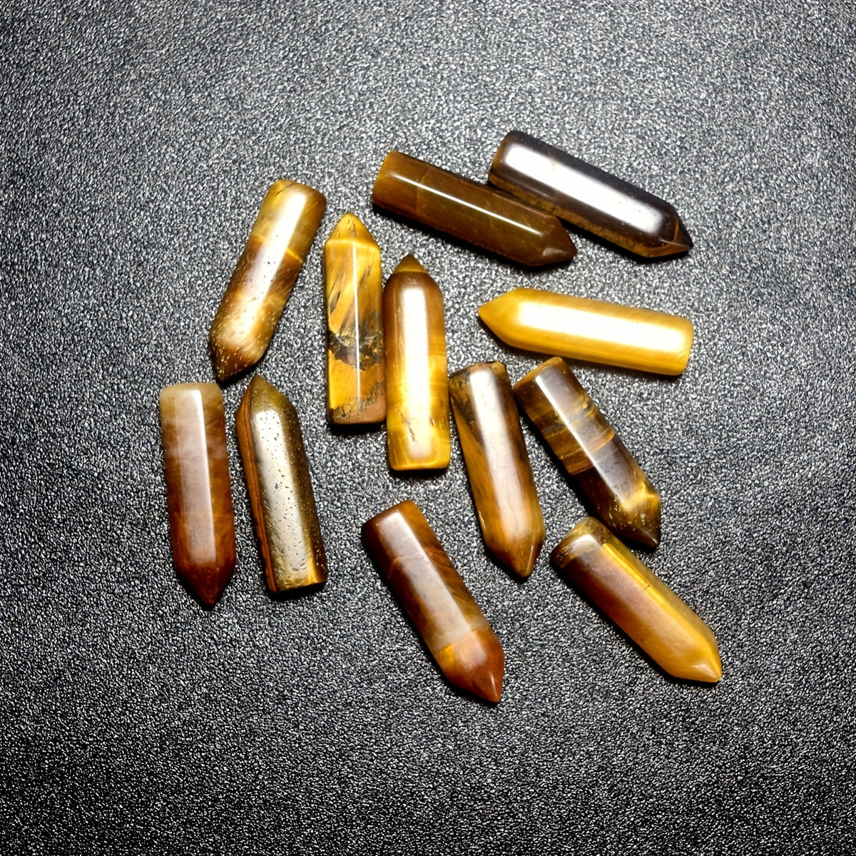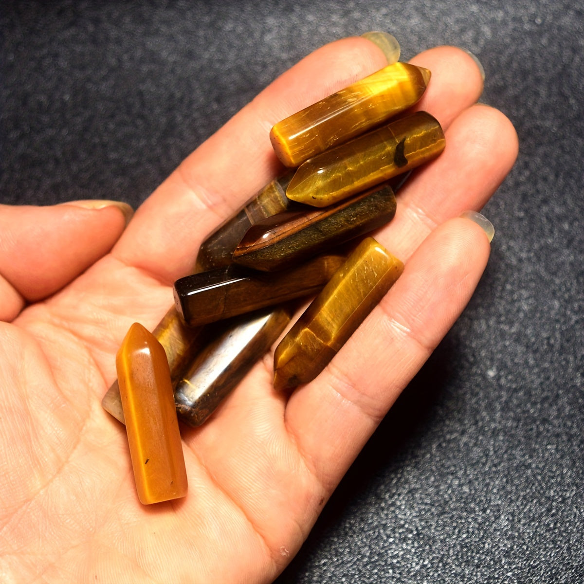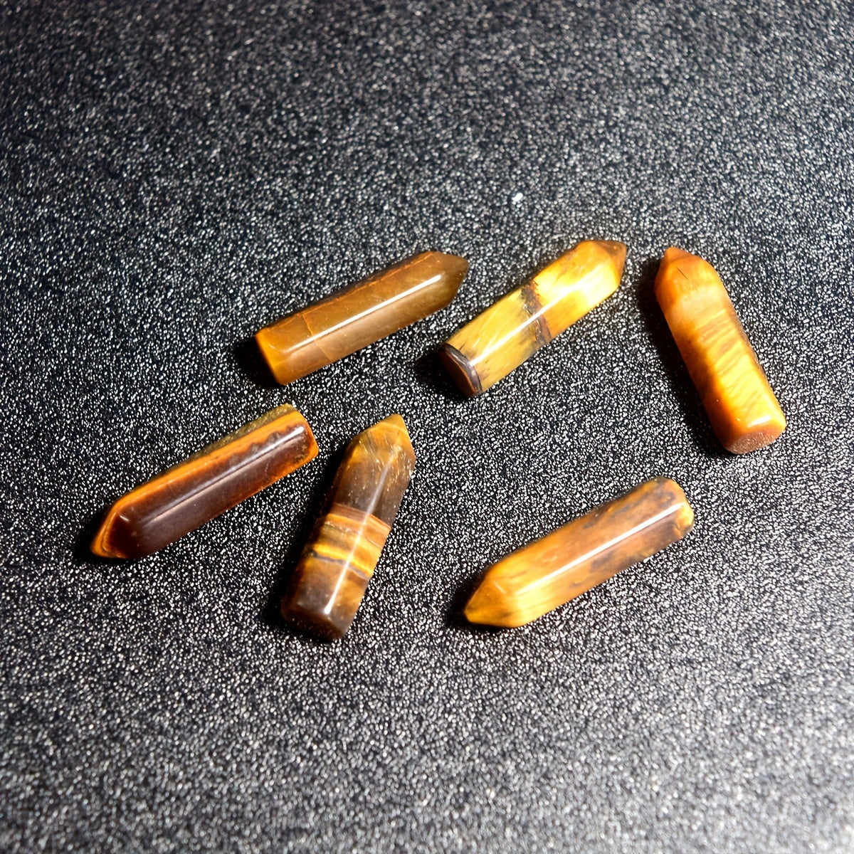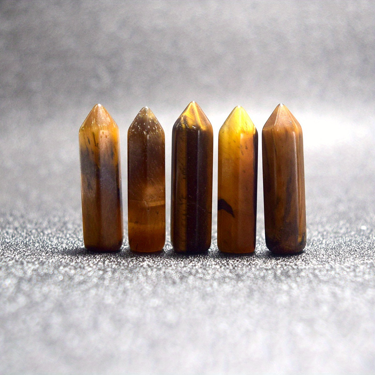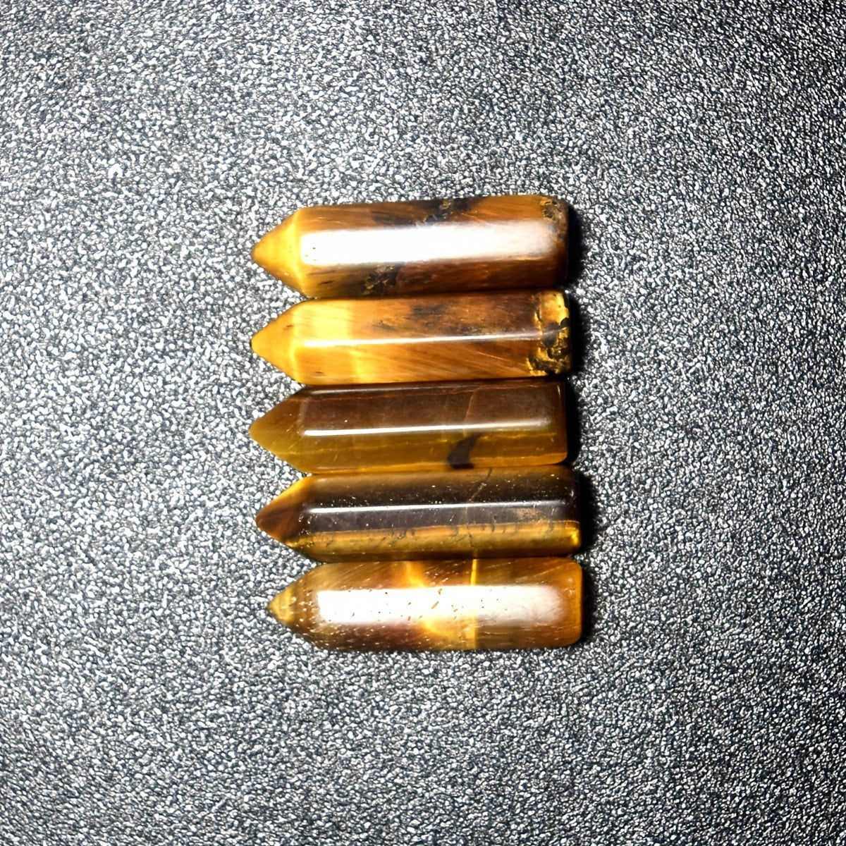 These 5 natural Tiger Eye healing crystal stones are polished and carved for use in meditation, chakra balancing, and energy healing. They make a thoughtful gift for anyone seeking spiritual wellness.