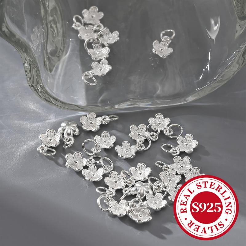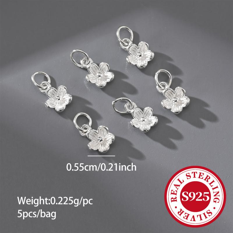 Add a touch of elegance to your DIY jewelry pieces with these 5 small peach blossom pendants. Made of S925 sterling silver, the three-dimensional plum flower charms are perfect for bracelets, necklaces, and even tassels.