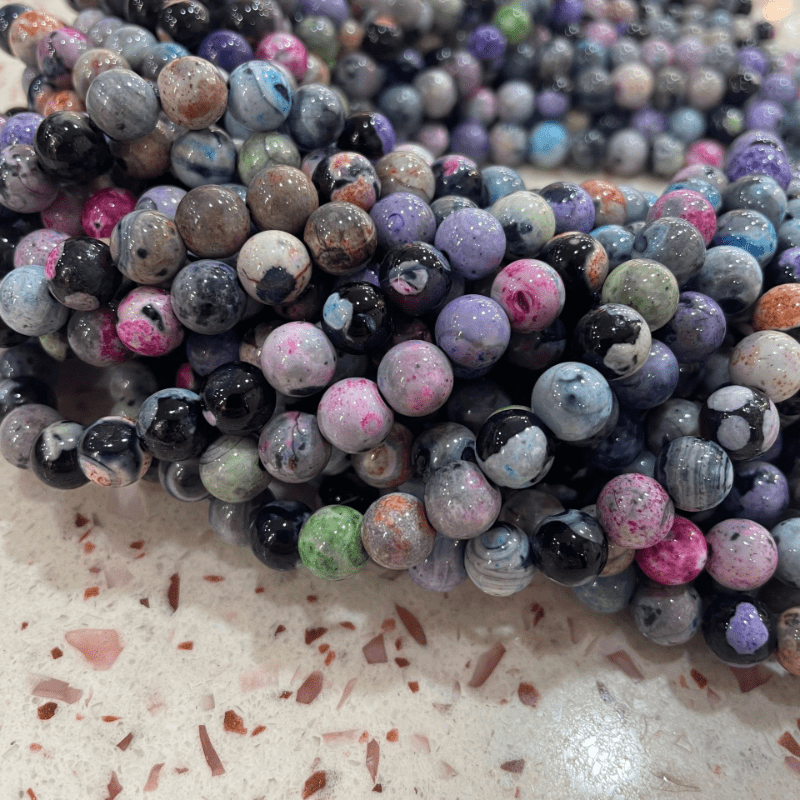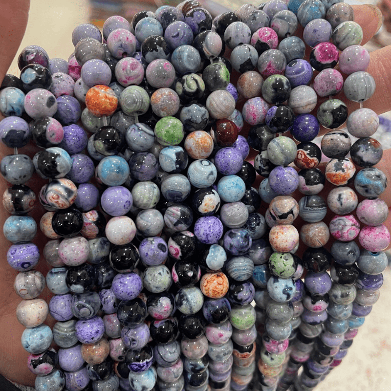 • Includes five Flame Agate round beads in various sizes (6mm, 8mm, 10mm)