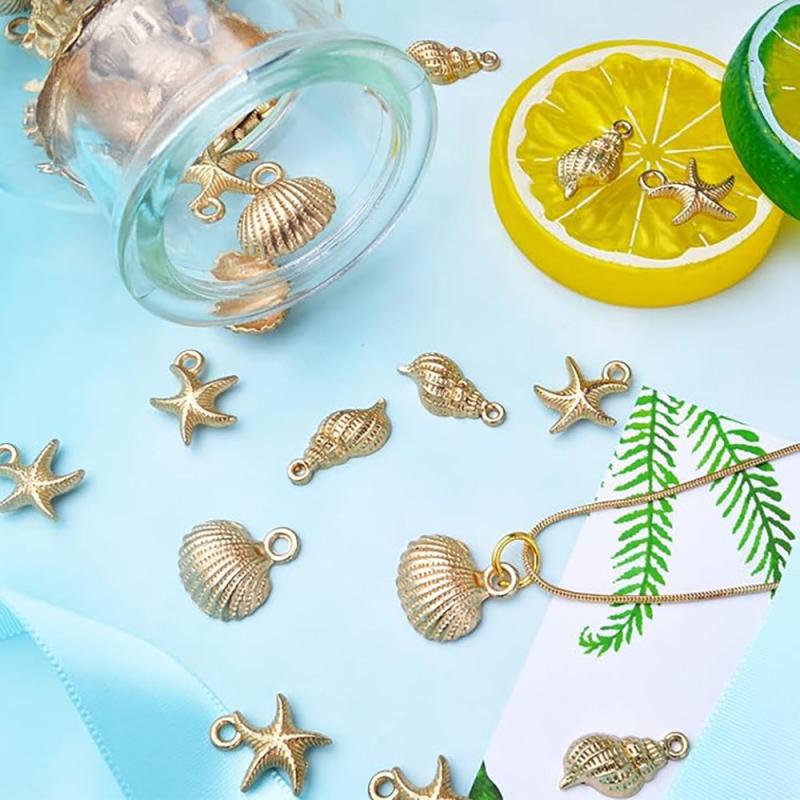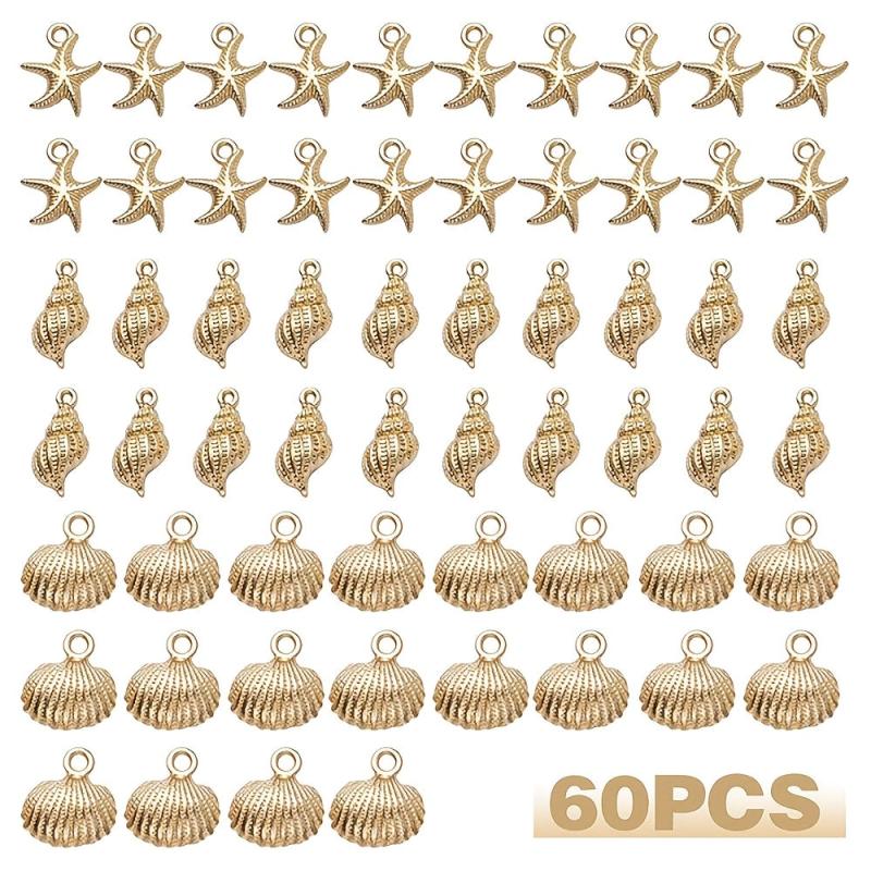 Enhance your jewelry making with this set of 60 ocean theme charms featuring various sea animals. Perfect for creating DIY earrings, necklaces, and more.