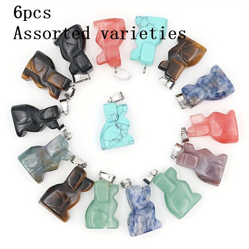These unique natural stone charms feature intricate designs and come in random colors. Perfect for crafting your own jewelry pieces.