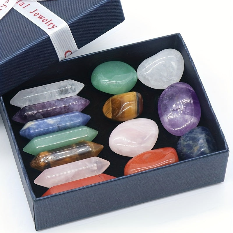 Enhance your space with this 7 Chakra Decor Healing Crystals Set featuring natural quartz Reiki points and tumbled gemstones. Great for reiki healing, energy balancing, and chakra alignment.