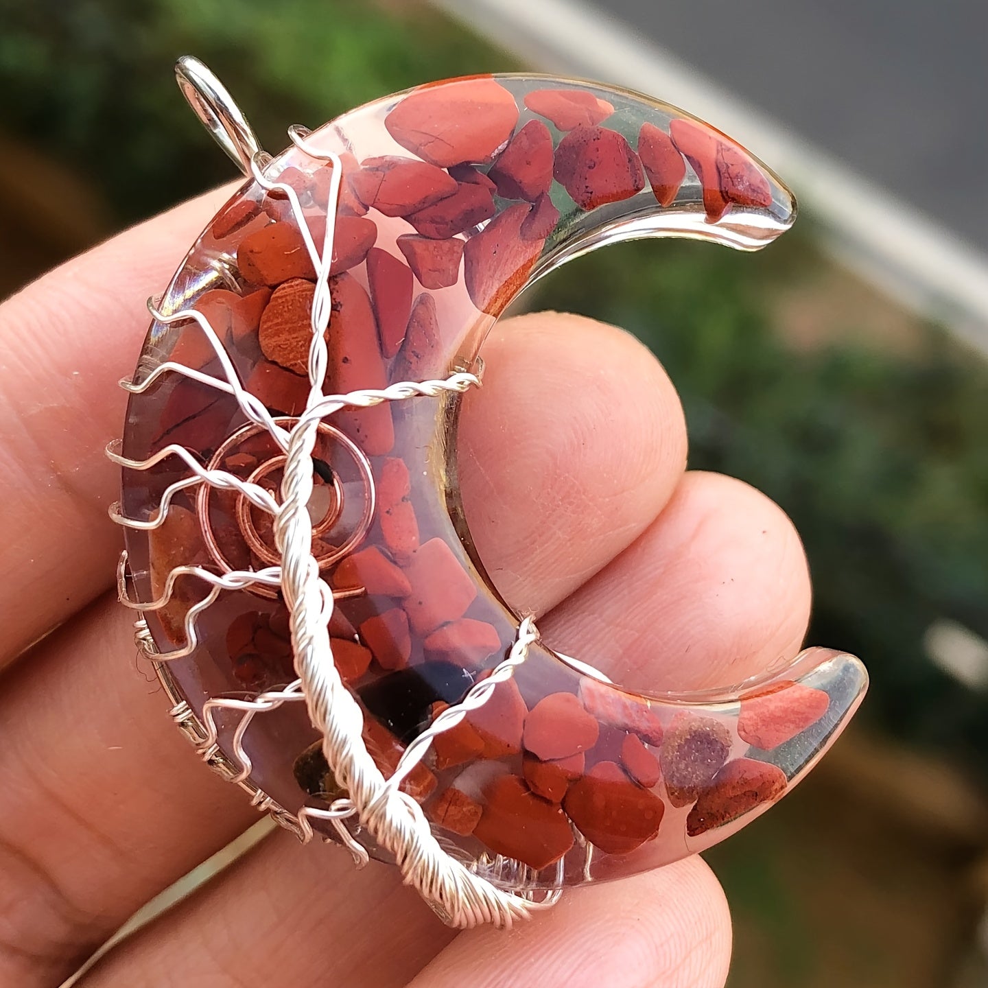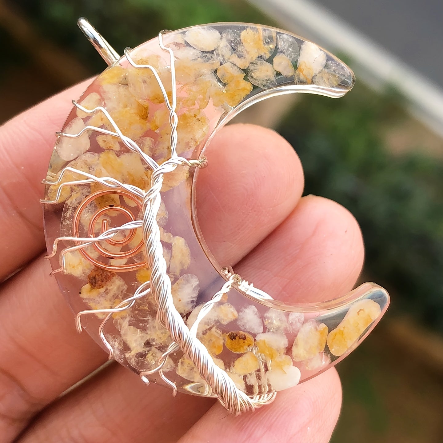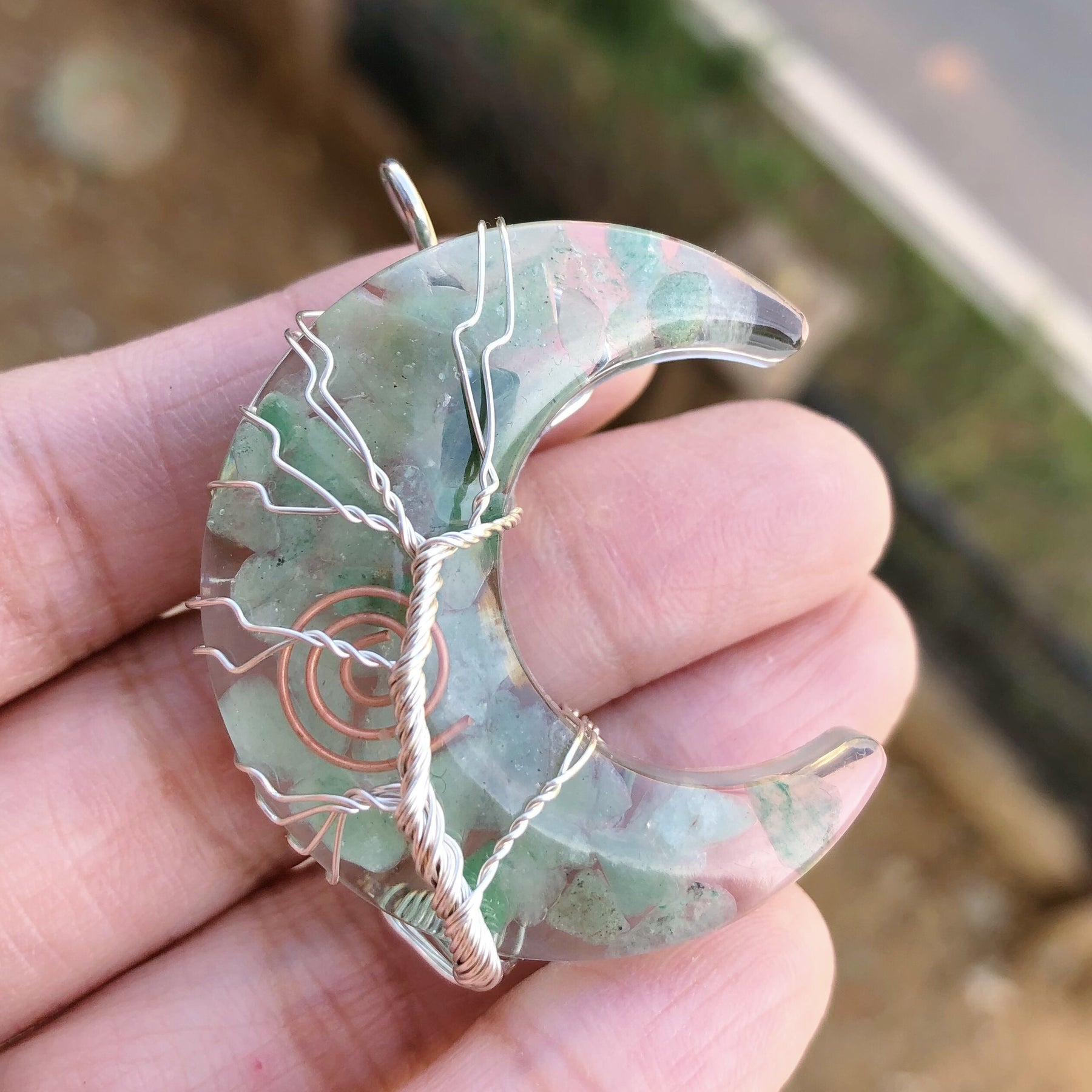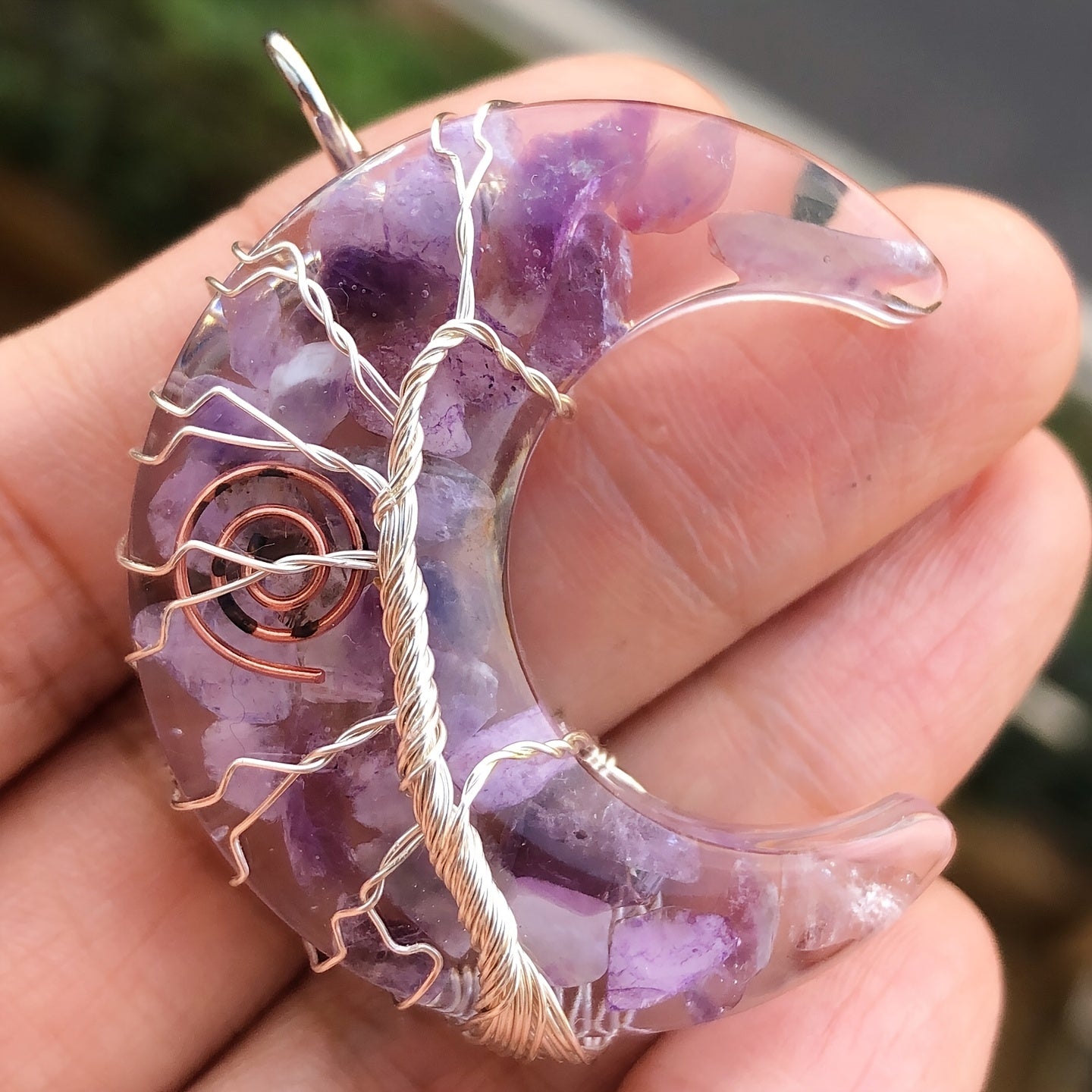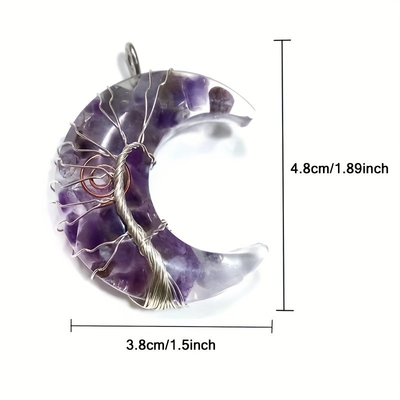 This beautiful pendant features 7 chakra stones in a tree of life design with a moon charm. It is believed to promote energy balance, healing, and positive vibes through Reiki practices.