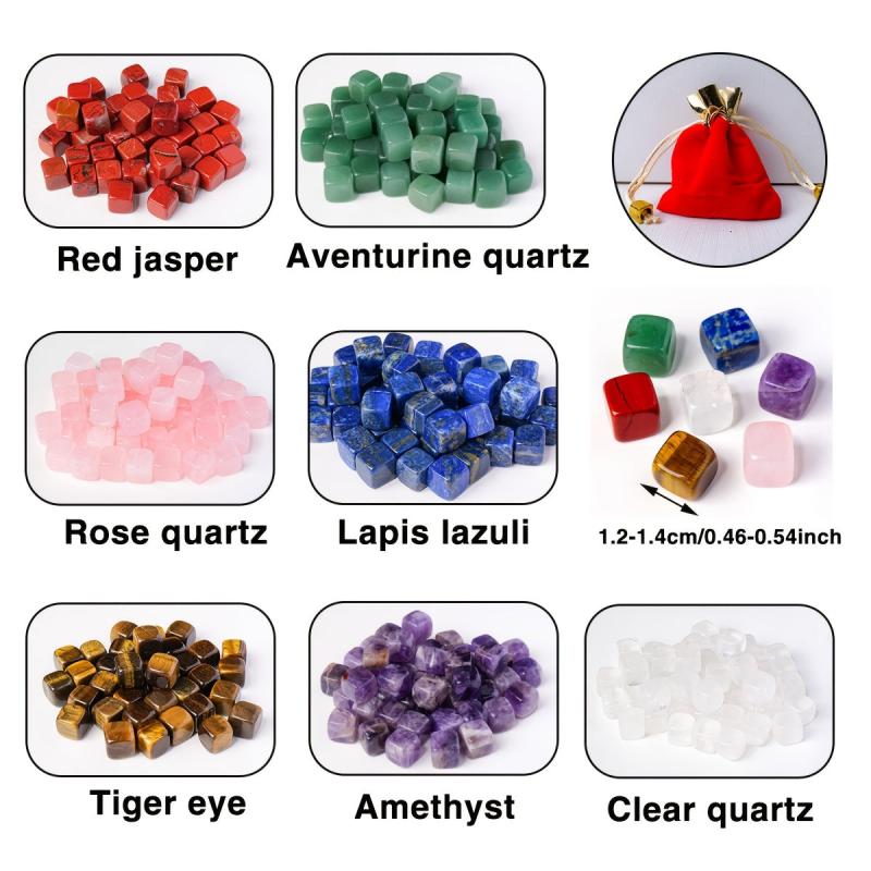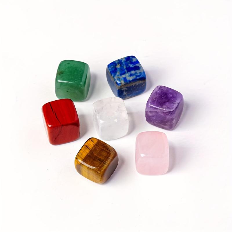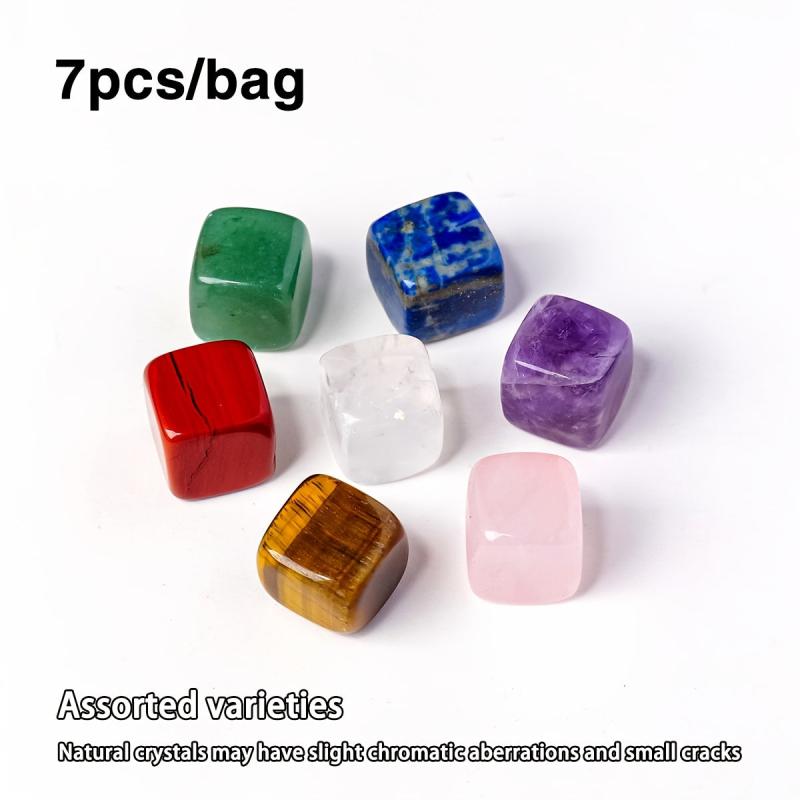 Enhance your home decor or jewelry making projects with this set of 7 polished faux gemstones in cube shape. These crystal stones are perfect for adding a touch of elegance to any space.