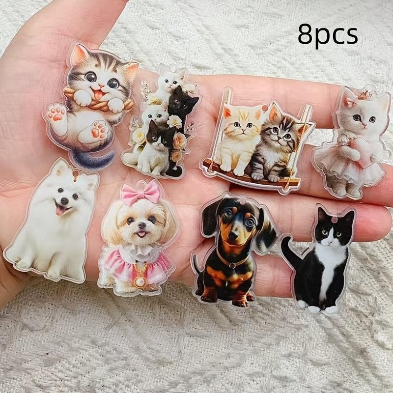8pcs Animal Charms for DIY Jewelry Making, Cat and Dog Designs