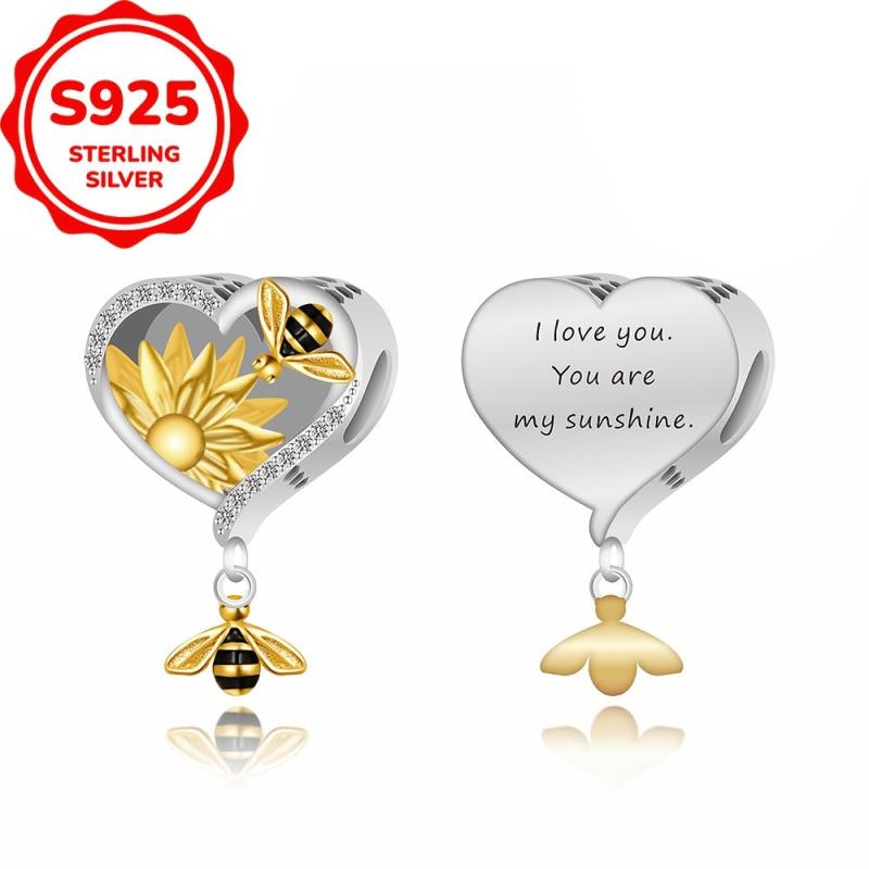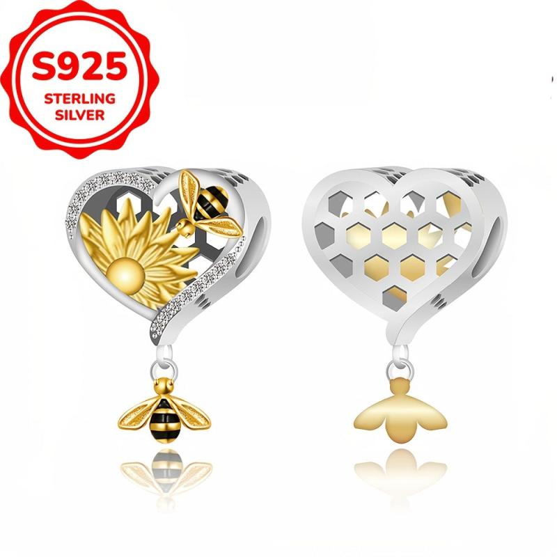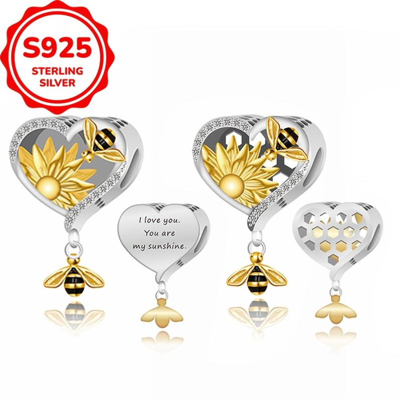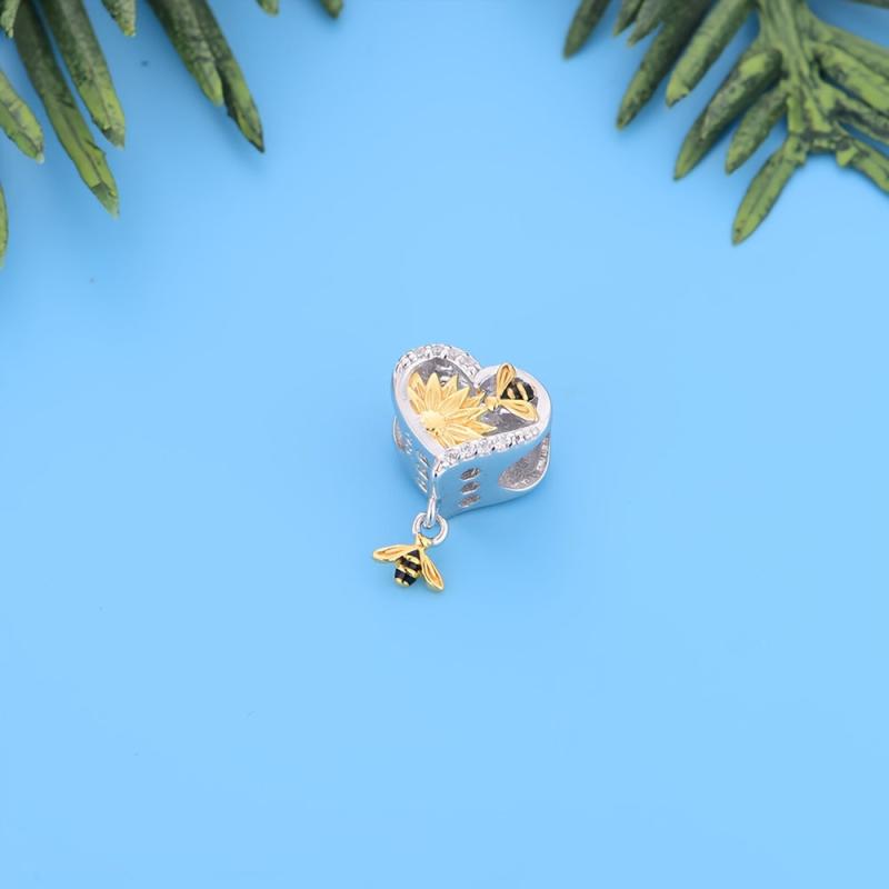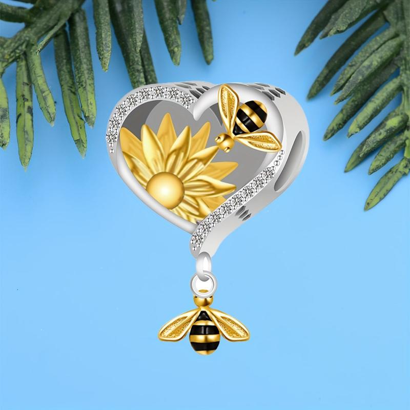 Add a touch of nature with this 925 sterling silver flower and bees charm for your bracelet or necklace DIY project.