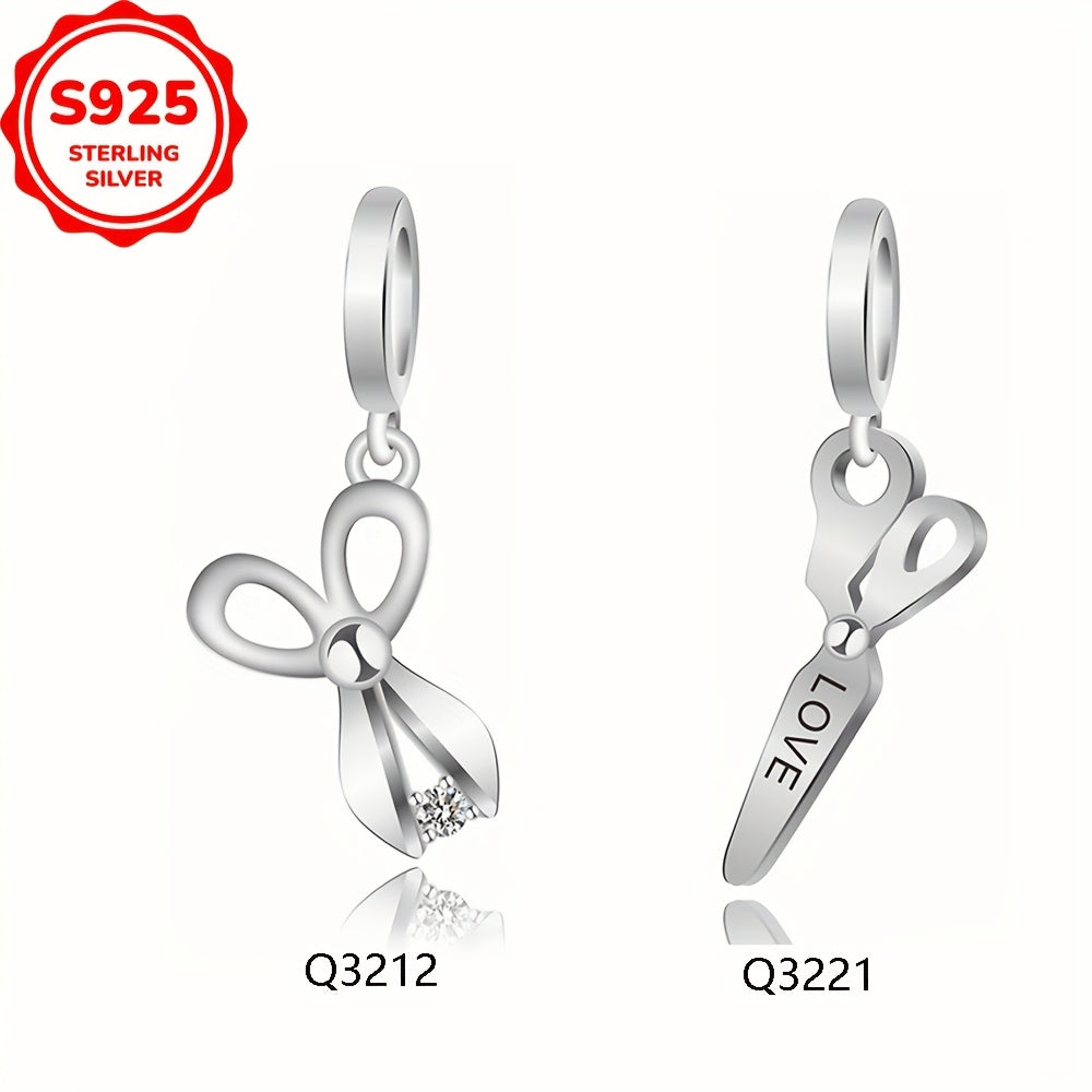 925 Silver Hairdresser Scissors Dangle Charms Beads for Women