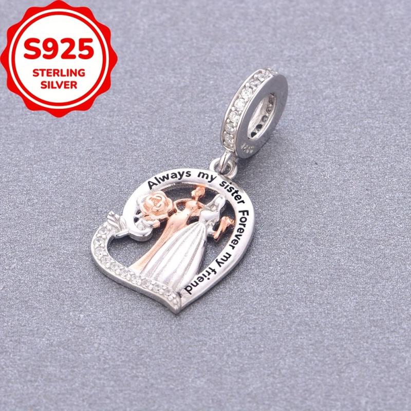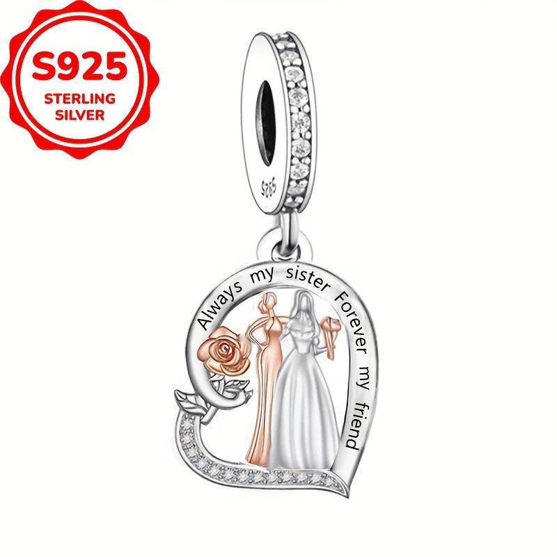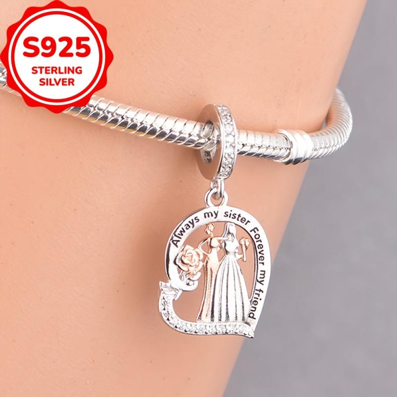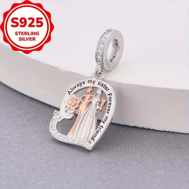 This 925 sterling silver heart-shaped charm is perfect for creating a special bracelet or necklace for your sister. It weighs 1.7g and is ideal for DIY jewelry making.