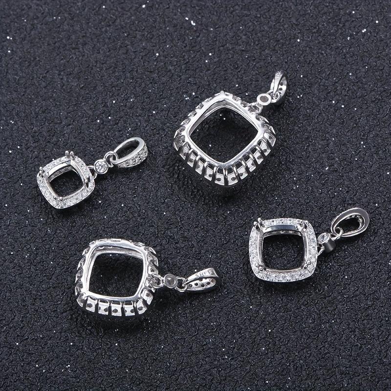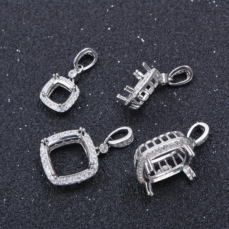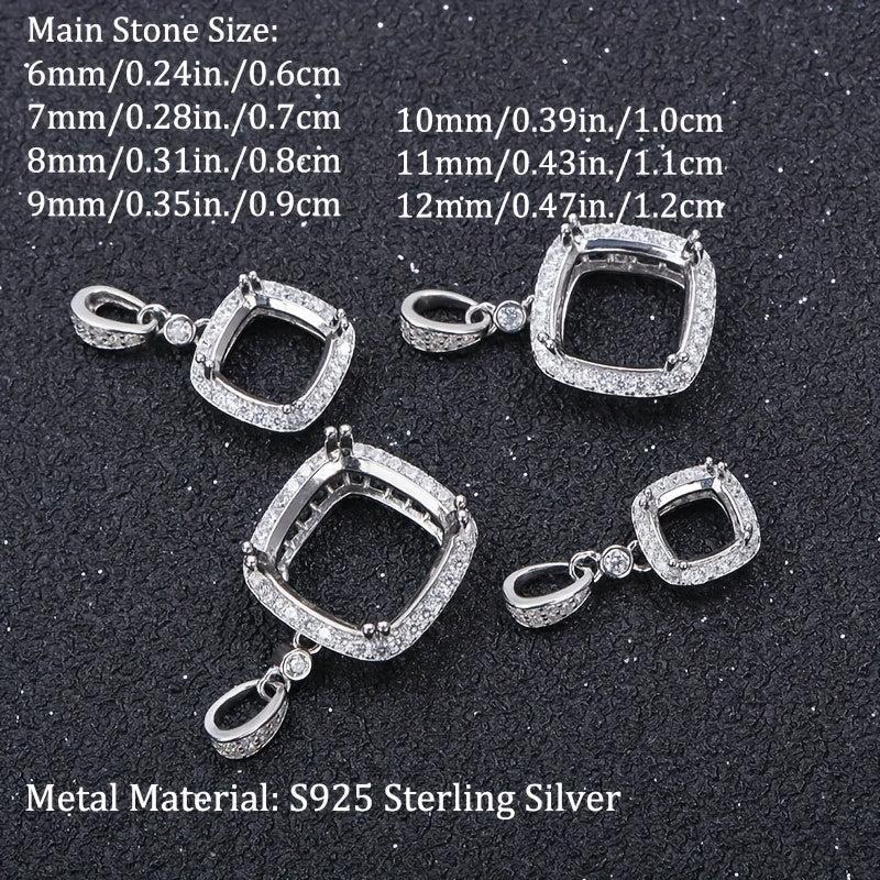 925 Sterling Silver Cushion Pendant Base 6-12mm Adjustable DIY Jewelry