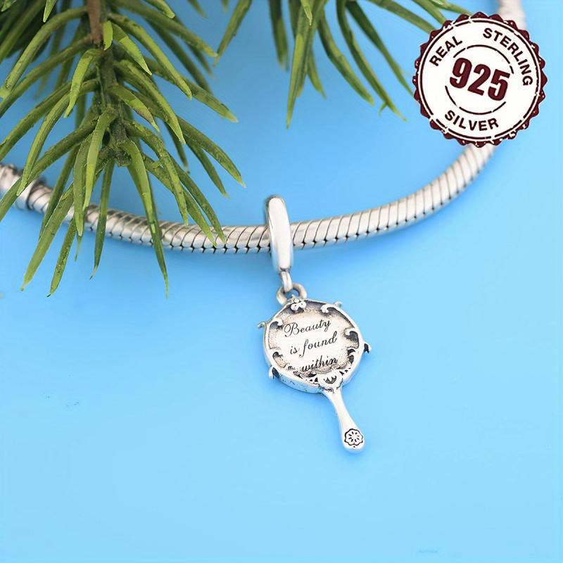 This stunning necklace pendant features a mirror design with the inspirational message 'Beauty Is Found Within'. Crafted from 925 sterling silver, this piece is perfect for making a meaningful gift on birthdays or holidays.