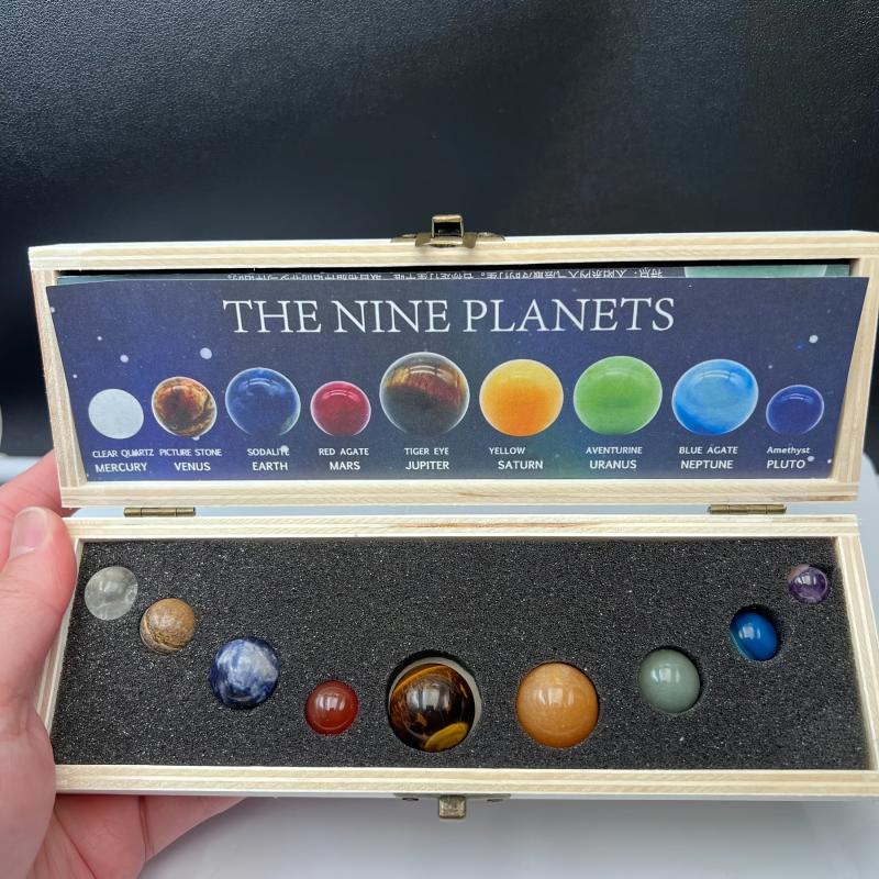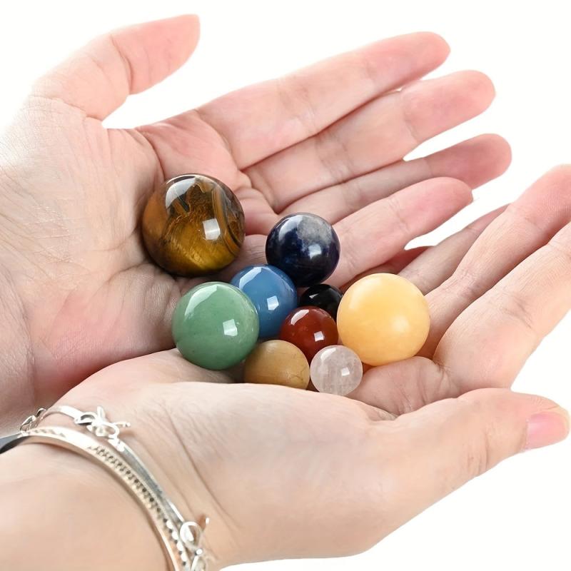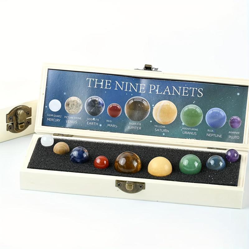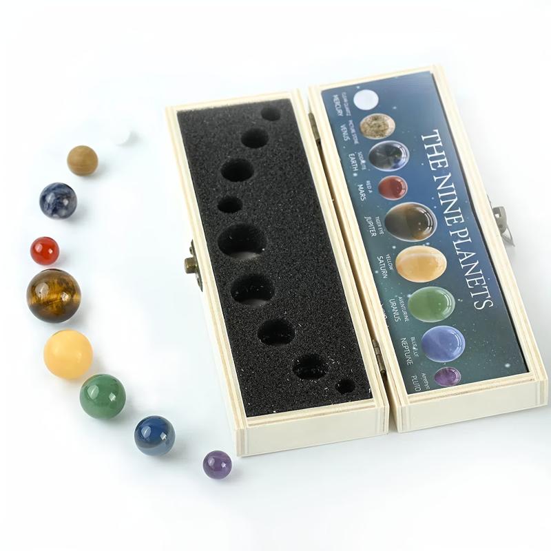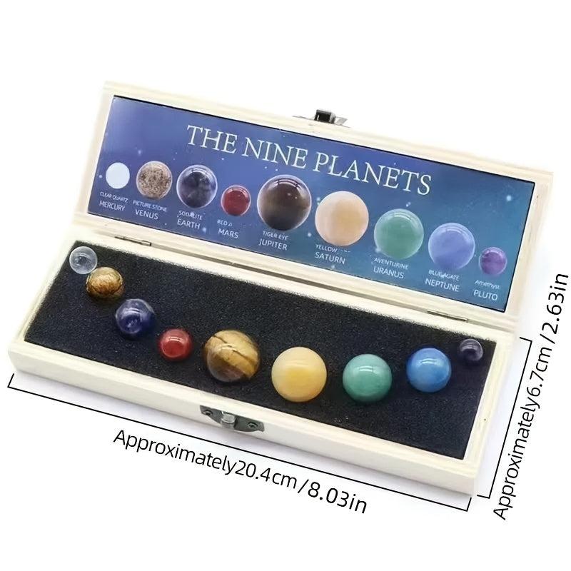 Bring the beauty of the 9 planets into your home or office with this set of crystal sphere balls. Made of synthetic gemstones, each representing a planet in the solar system.
