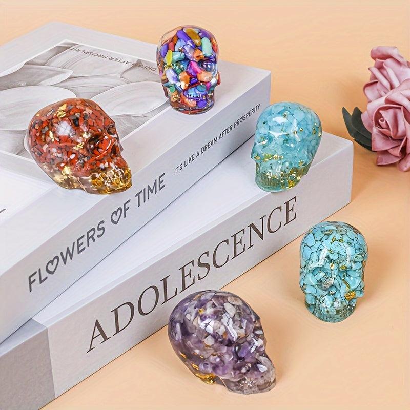 This crystal resin skull desk ornament is a unique and unusual home decor piece to add a touch of bohemian style to your space. It can also be used as a meditation stone or a natural stone jewelry accessory. This makes a great holiday gift idea too!