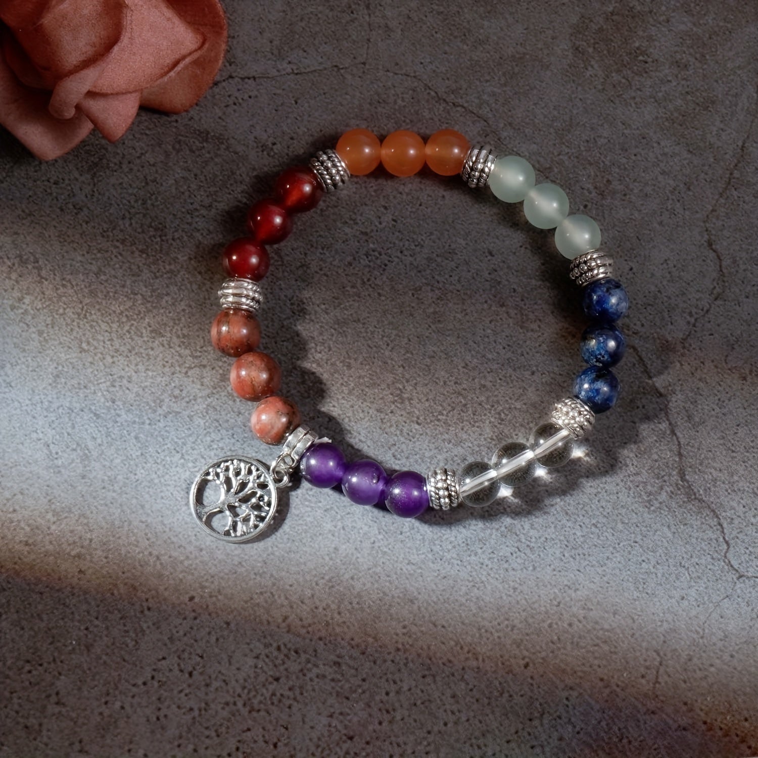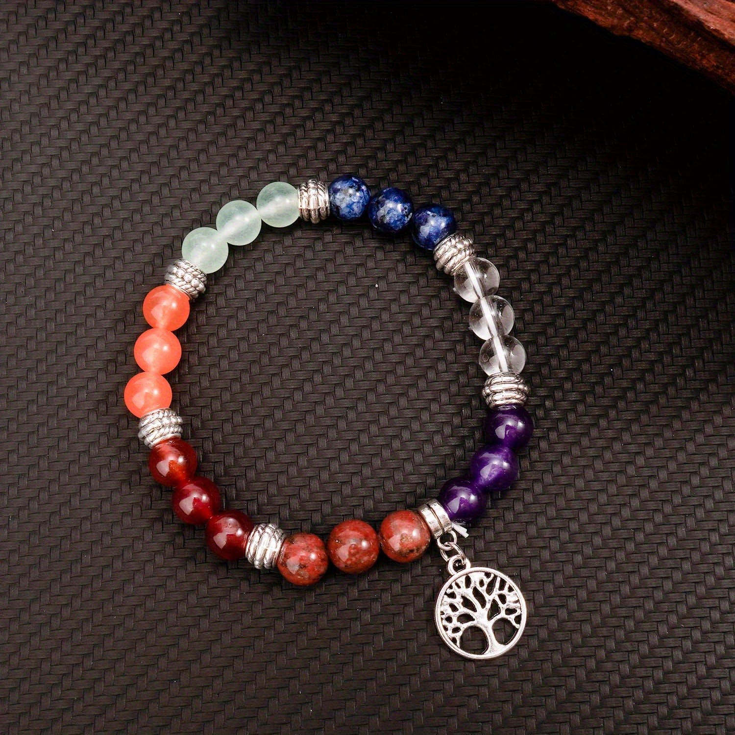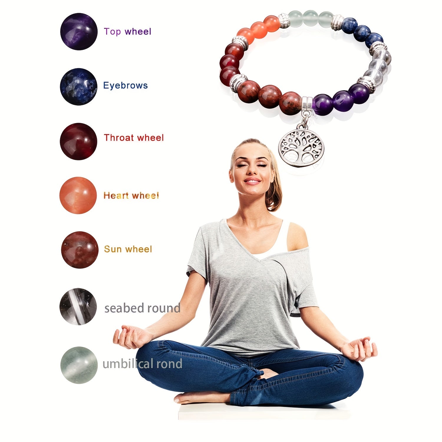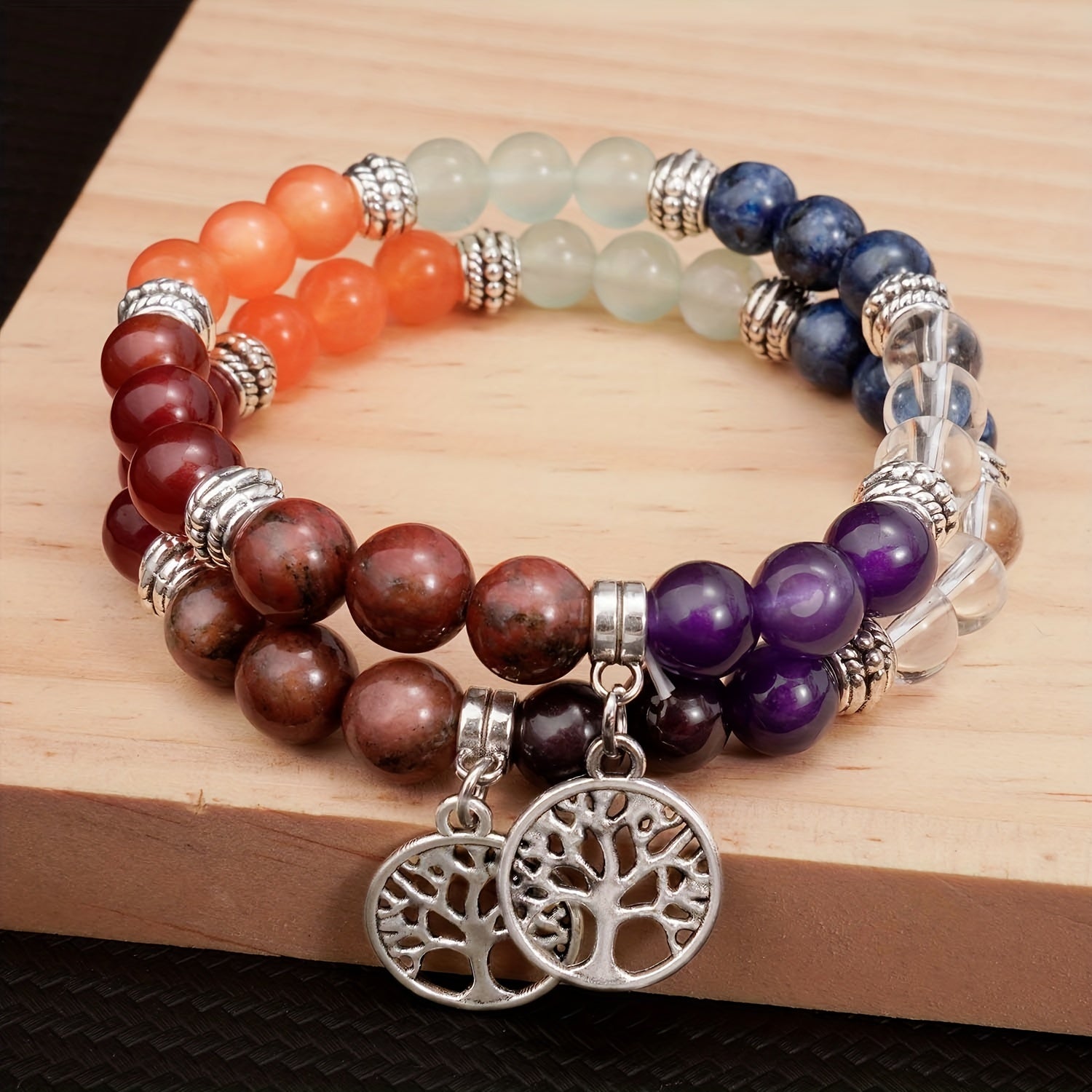 Find balance and healing energy with these Chakra Life Tree bracelets made of natural stones. Perfect for meditation and yoga practices.