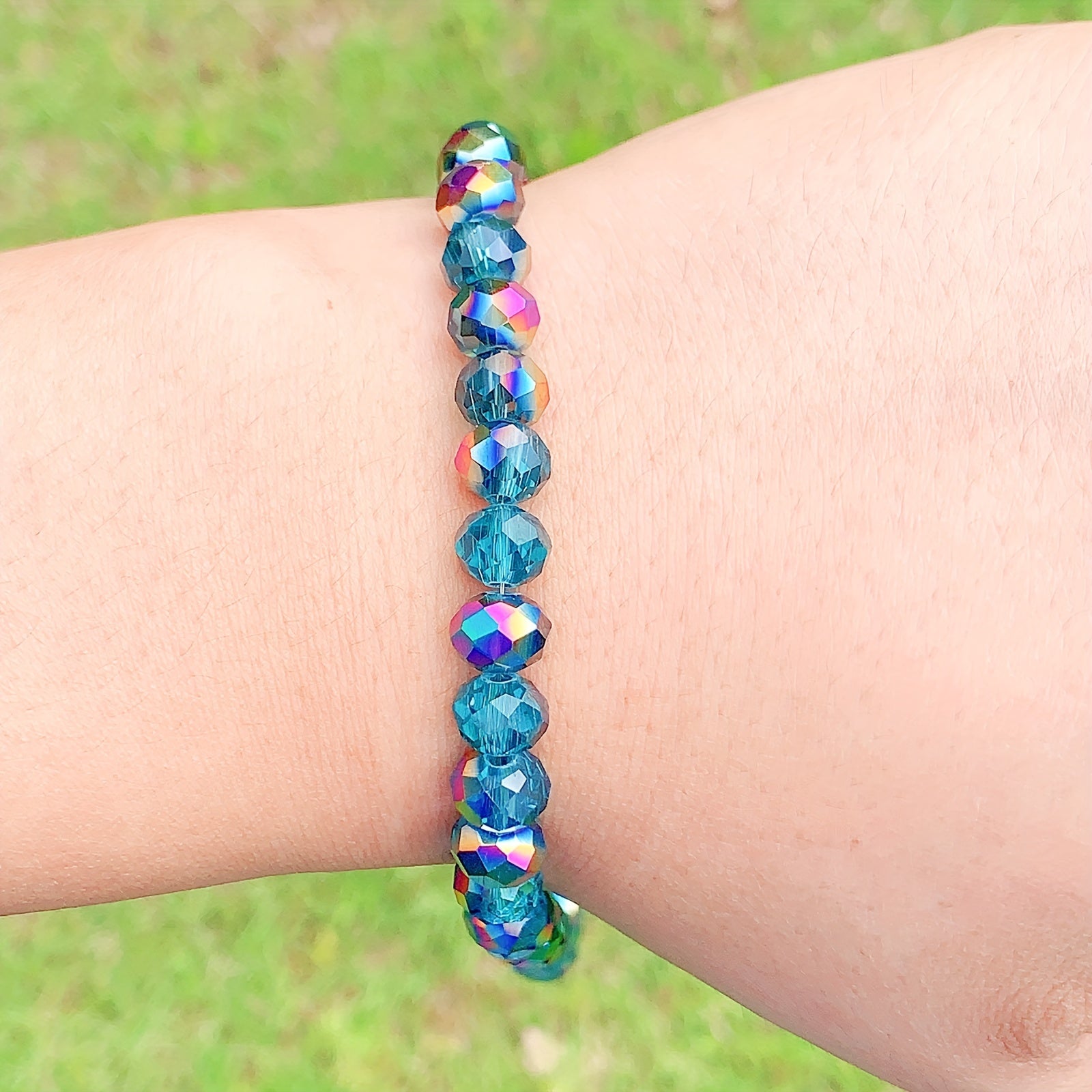 Enhance your jewelry making with these beautiful faceted glass beads. Perfect for creating bracelets and other accessories.