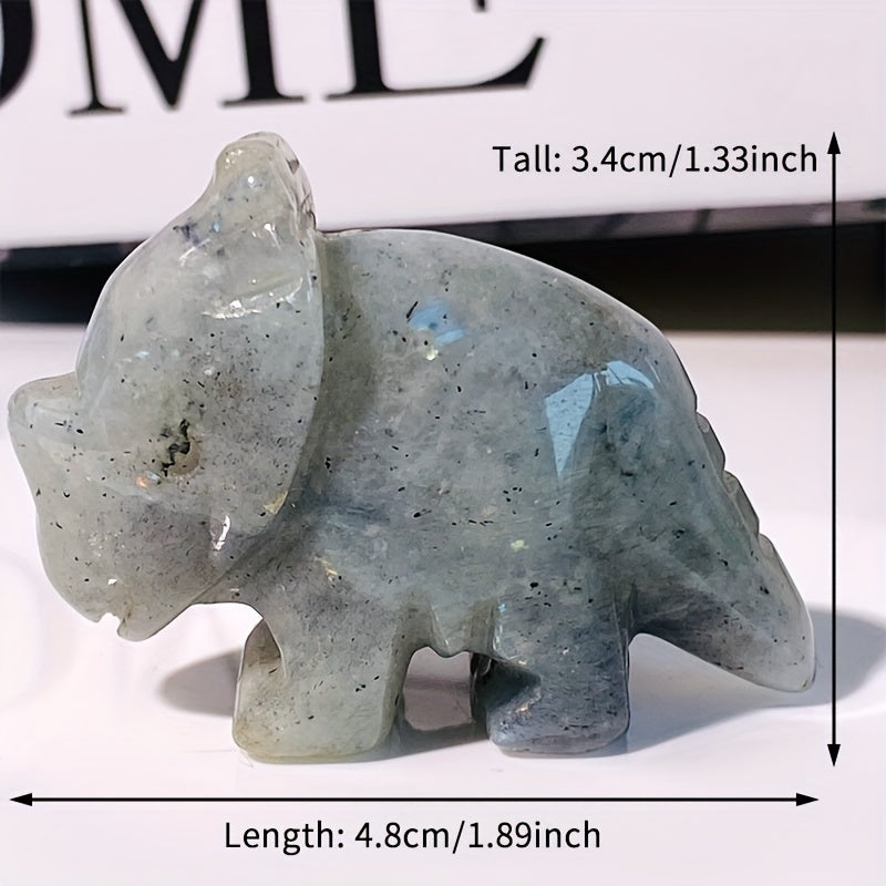 Add a touch of prehistoric charm to your space with this intricately carved crystal triceratops ornament. Perfect for car enthusiasts and dinosaur lovers alike.