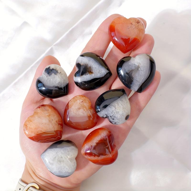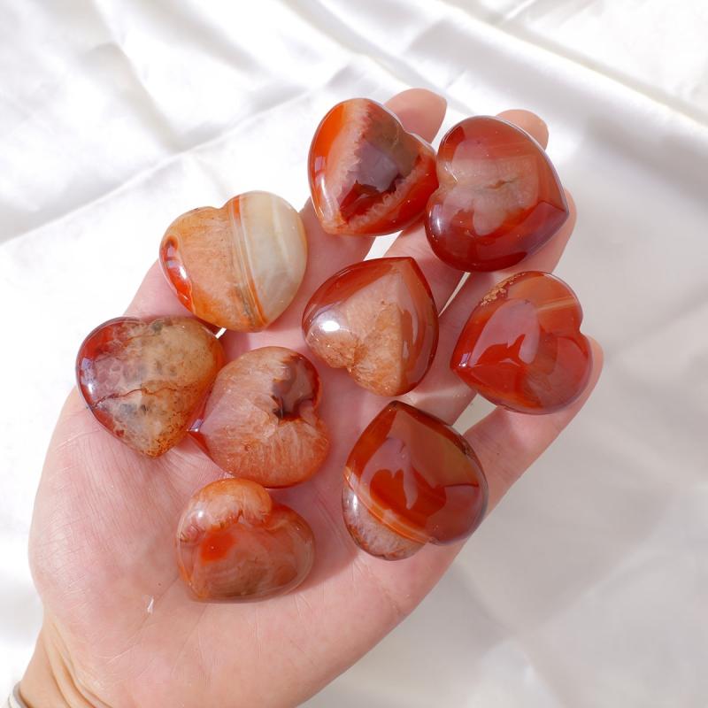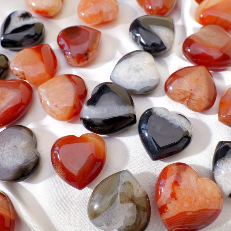 This unique crystal set includes 2pcs of red agate and sardonyx carved hearts in carnelian color. Each piece is polished for a beautiful finish, making them perfect as pocket stones or as a gift for a loved one.
