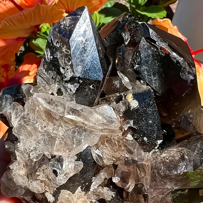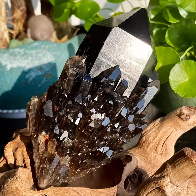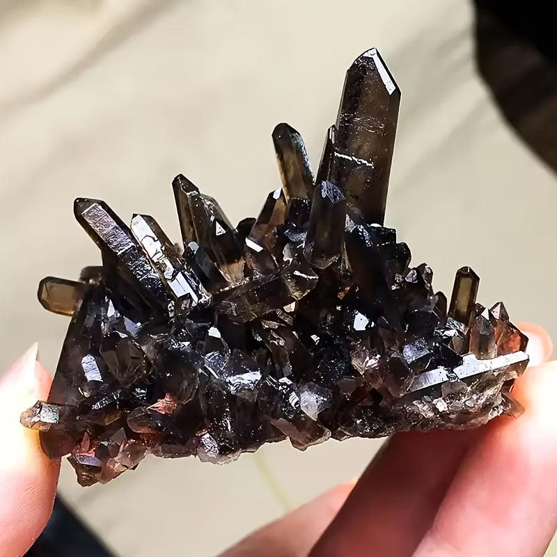 This unique crystal cluster features a dark brown hue and hexagonal prismatic shape, perfect for bohemian home decor, jewelry making, and as a mineral specimen. Makes a great holiday gift.