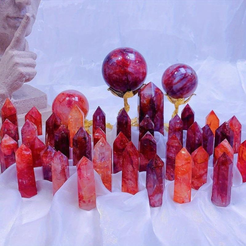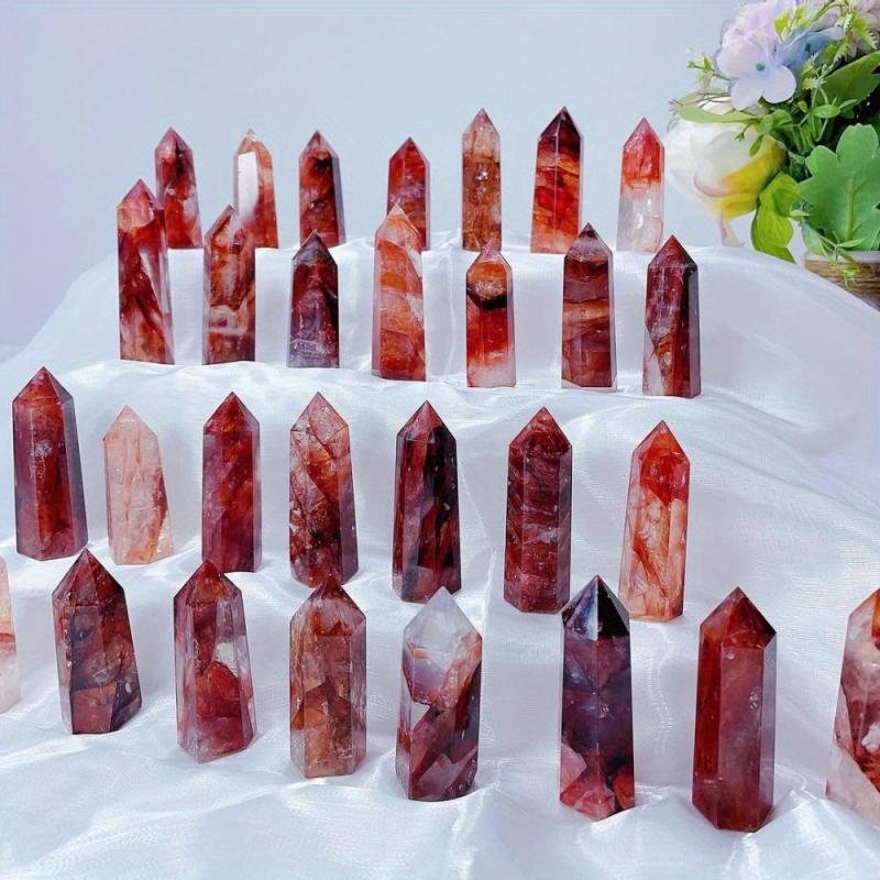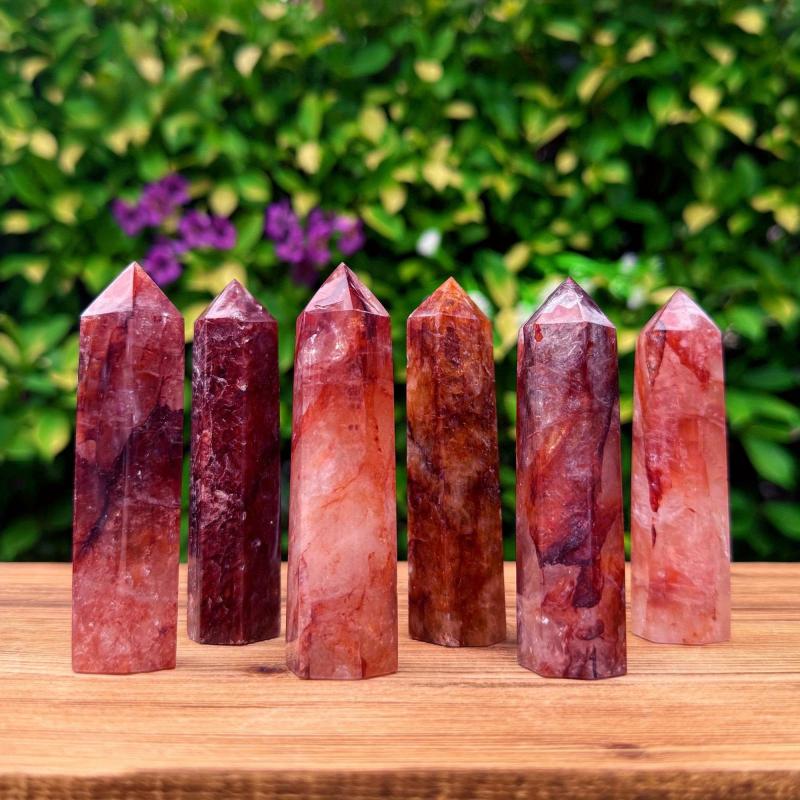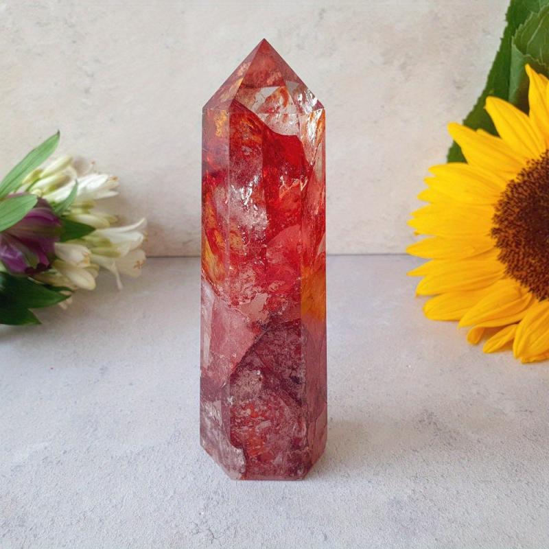 Fire Quartz Tower Crystal Wand Hematoid Quartz Obelisk Point Home Decor