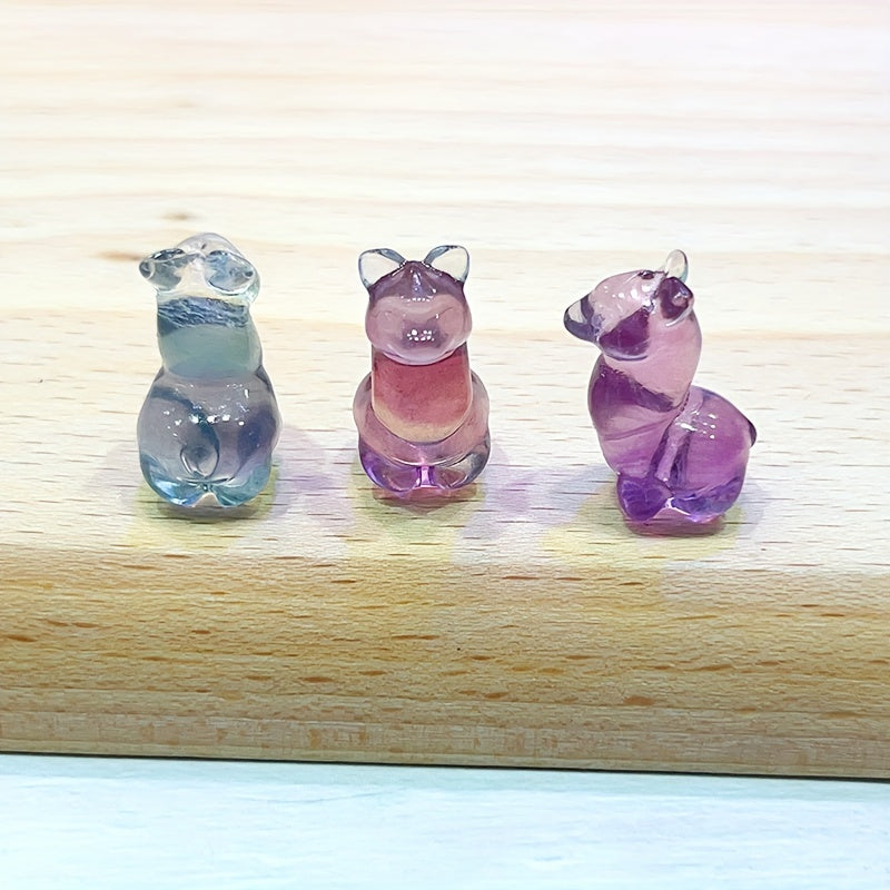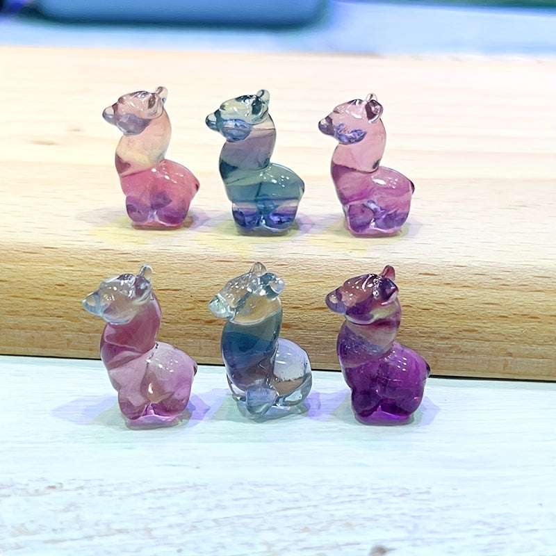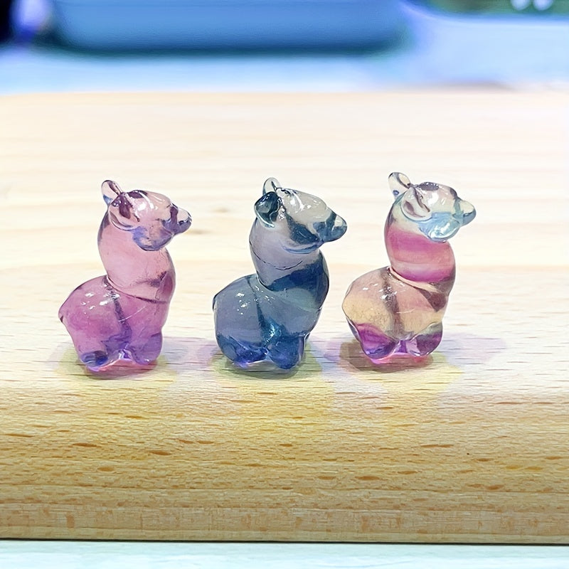 This small alpaca carving is made from natural fluorite, a healing stone known for its calming and protective properties. Perfect for crystal collectors or as a thoughtful gift.