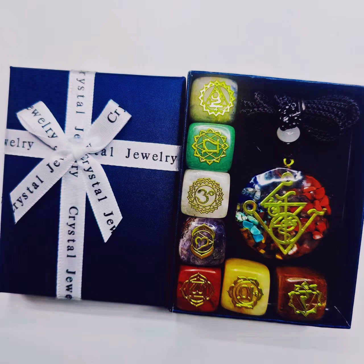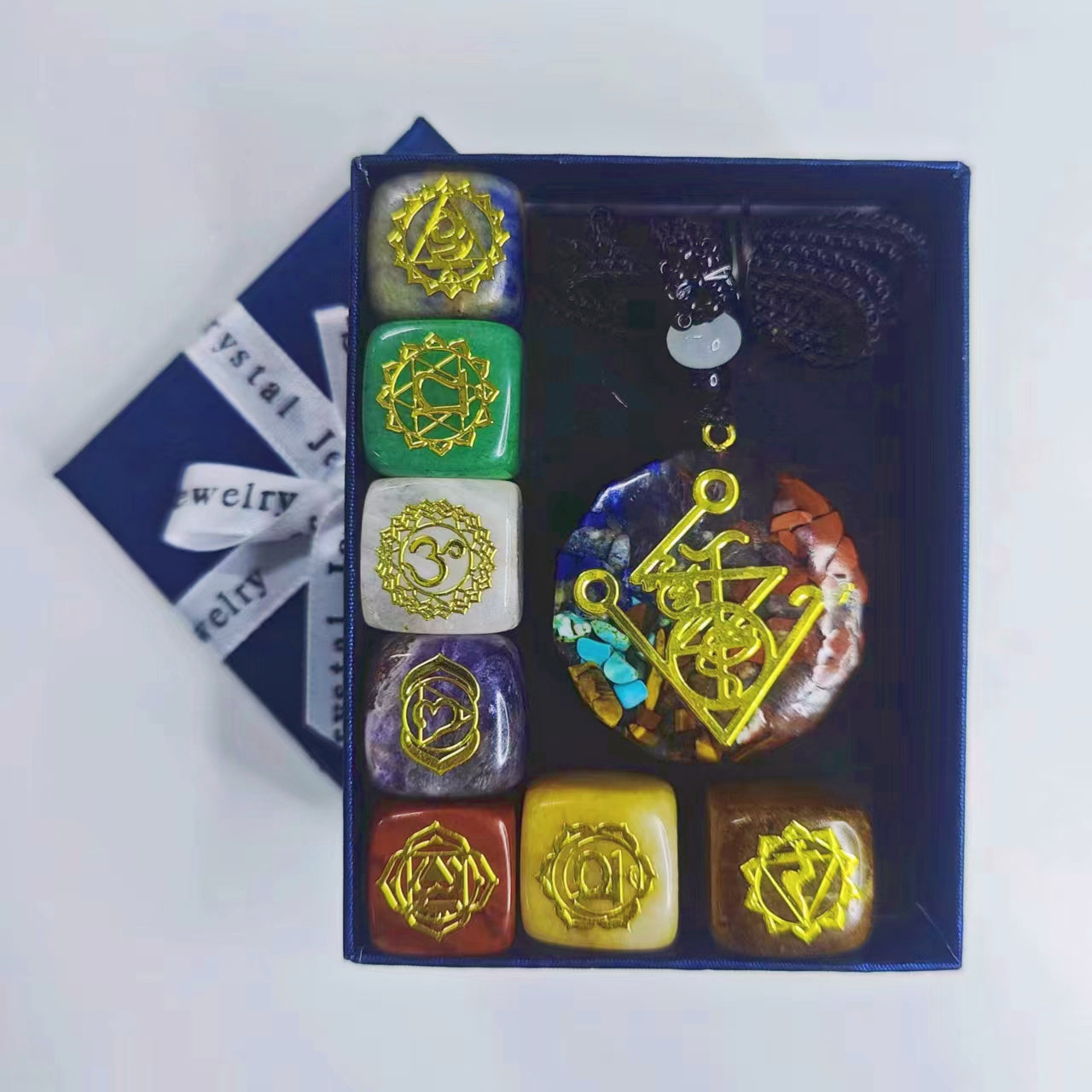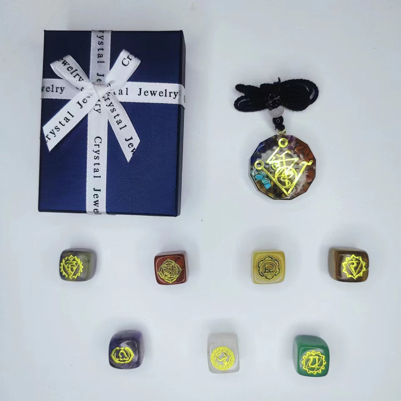 Natural Gemstones Tumbled Polished Cube Symbol Gemstone Healing Chakra Reiki Necklace Colored Gravel Rune Resin Necklace Collection Decorative Gift Se