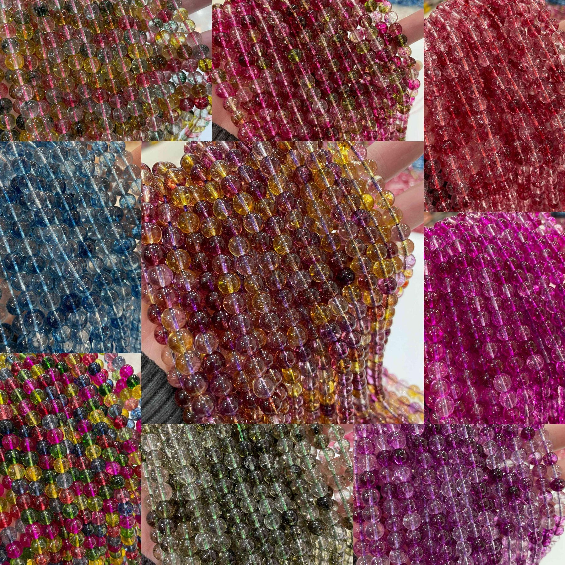 Get 26, 46, or 60pcs of 6mm (0.24) to 10mm (0.4) Ghost Crystal Beads in colorful Tourmaline. Perfect for bracelets and DIY jewelry making.