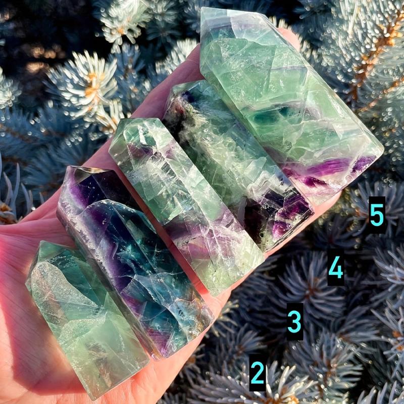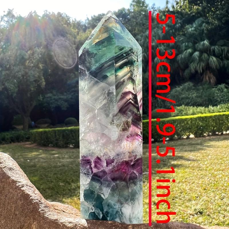 This bohemian style crystal tower features rare green and purple colors with a beautiful feather snowflake pattern. Perfect for healing and decoration.