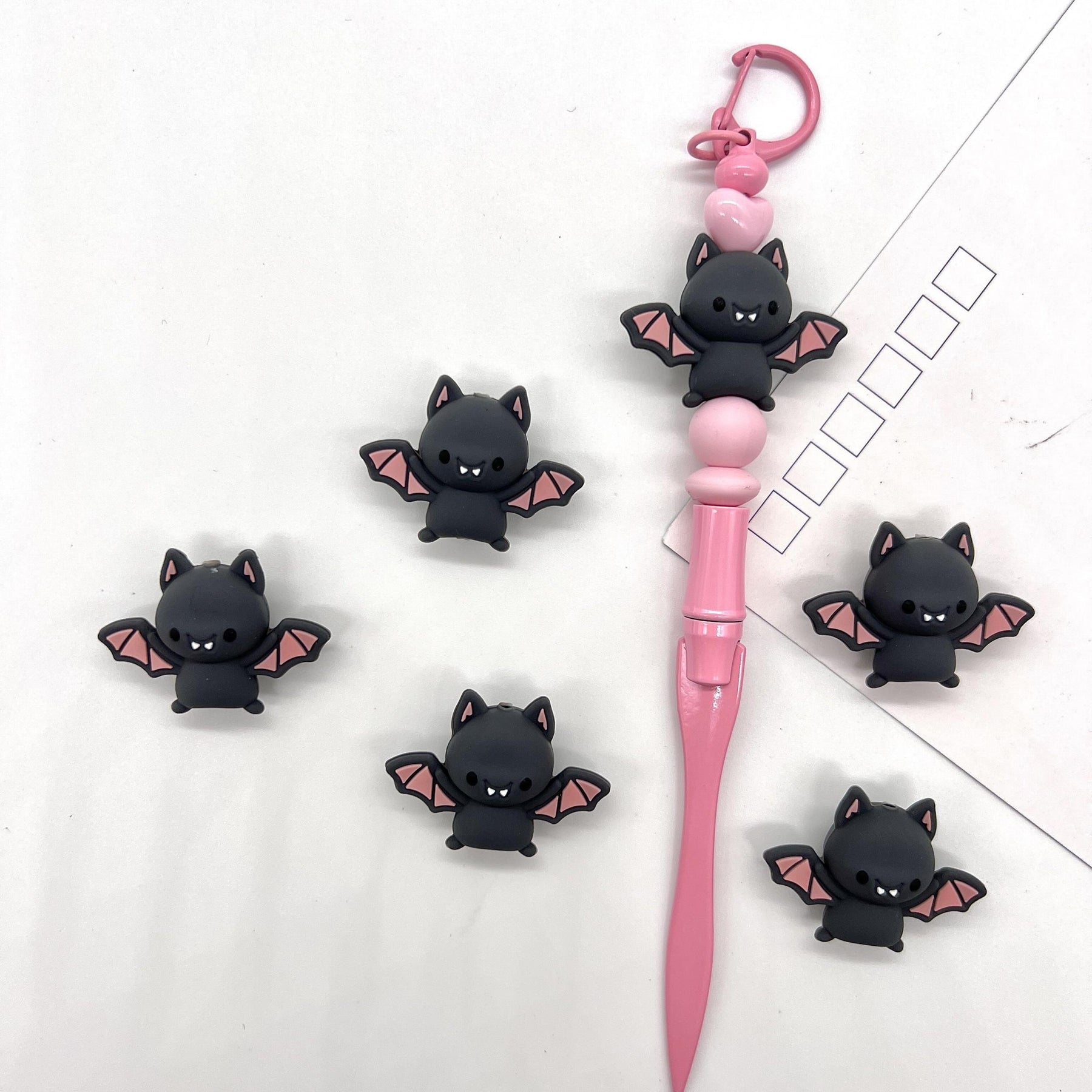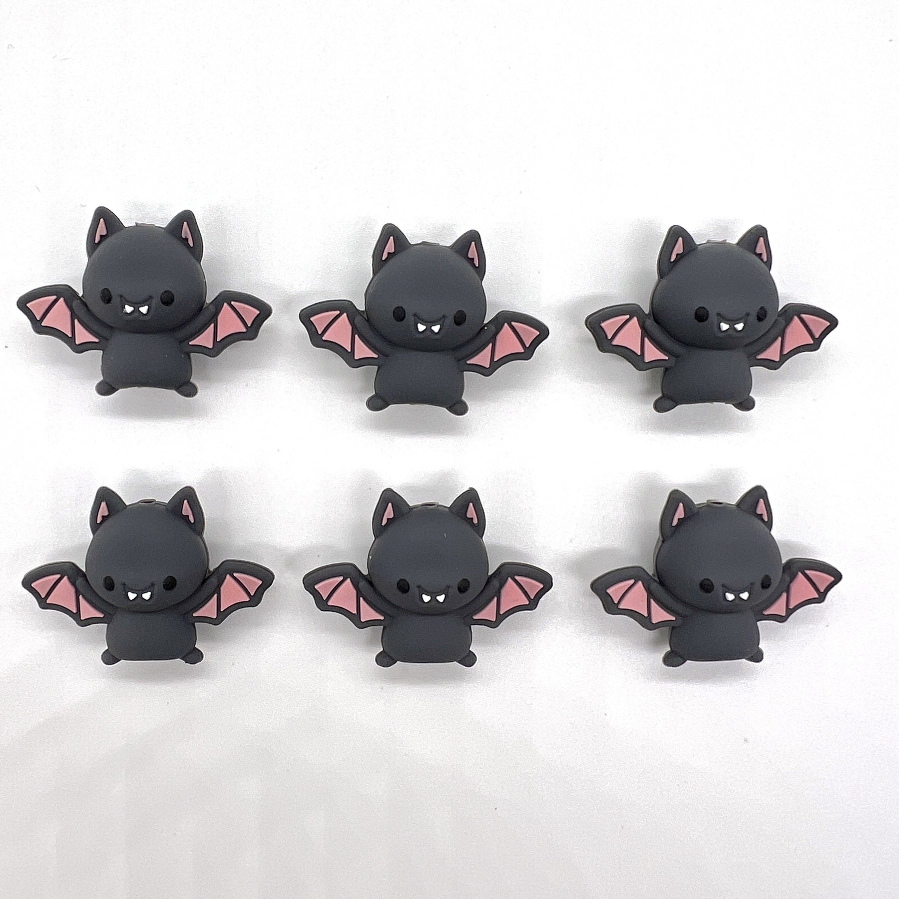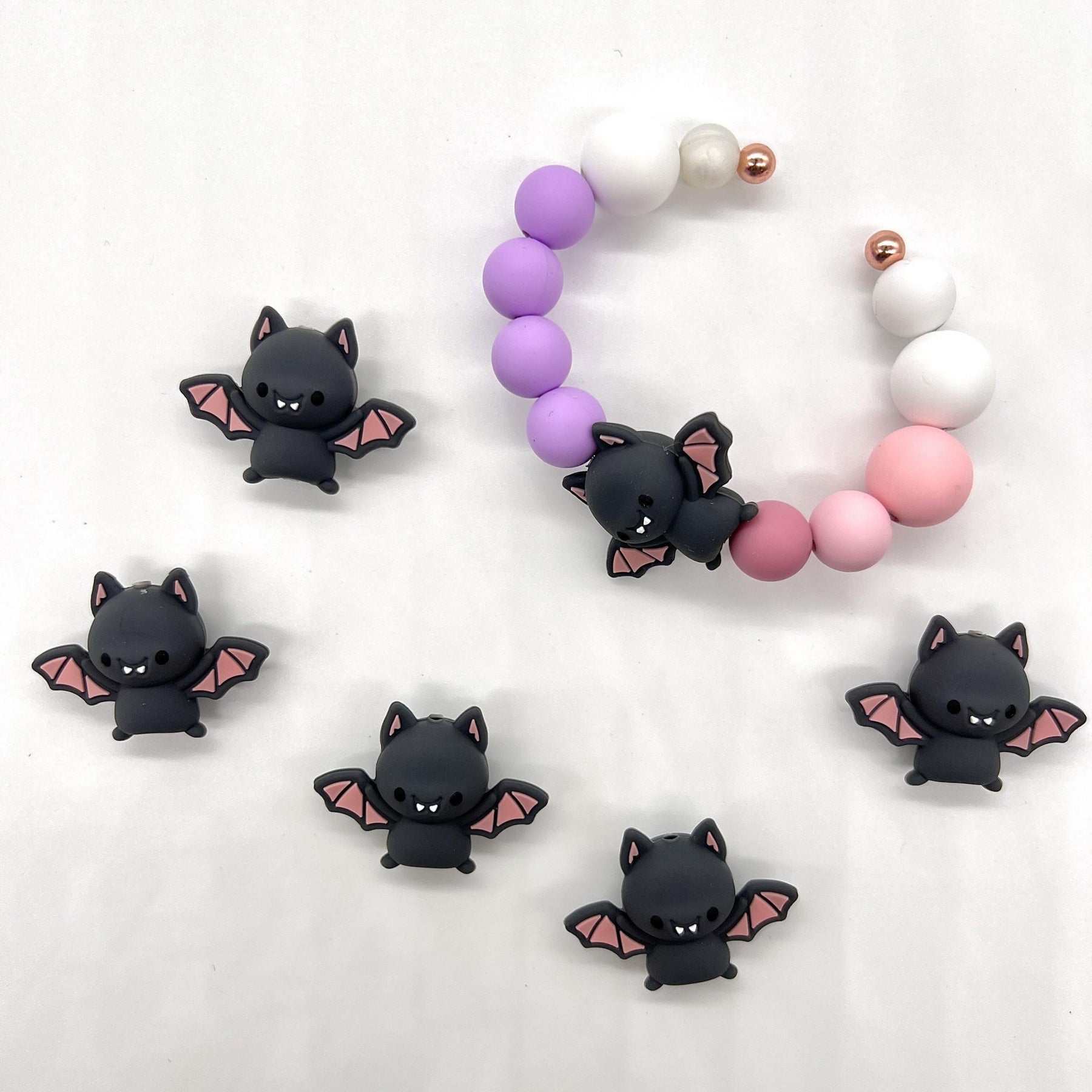 Get into the Halloween spirit with this 6-piece silicone beads set featuring a bat design. Perfect for creating your own jewelry, keychains, bracelets, necklaces, and more.