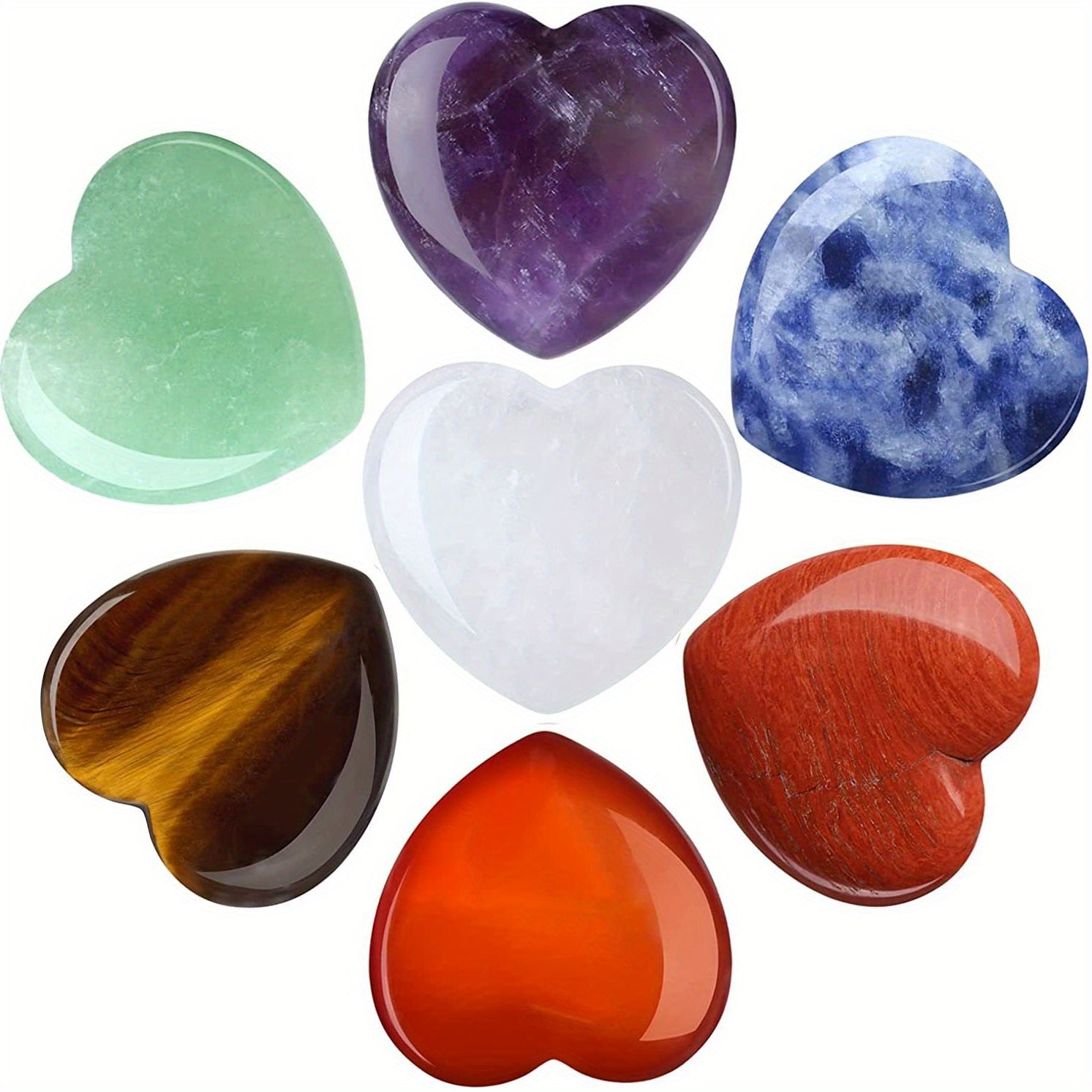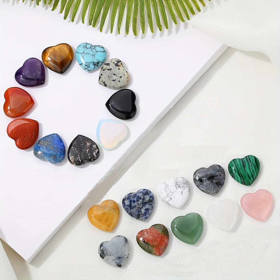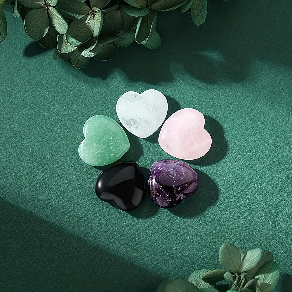 This set includes loose polished palm thumb gems in heart shape made from high-quality rose quartz and amethyst. Perfect for reiki and balance practices.