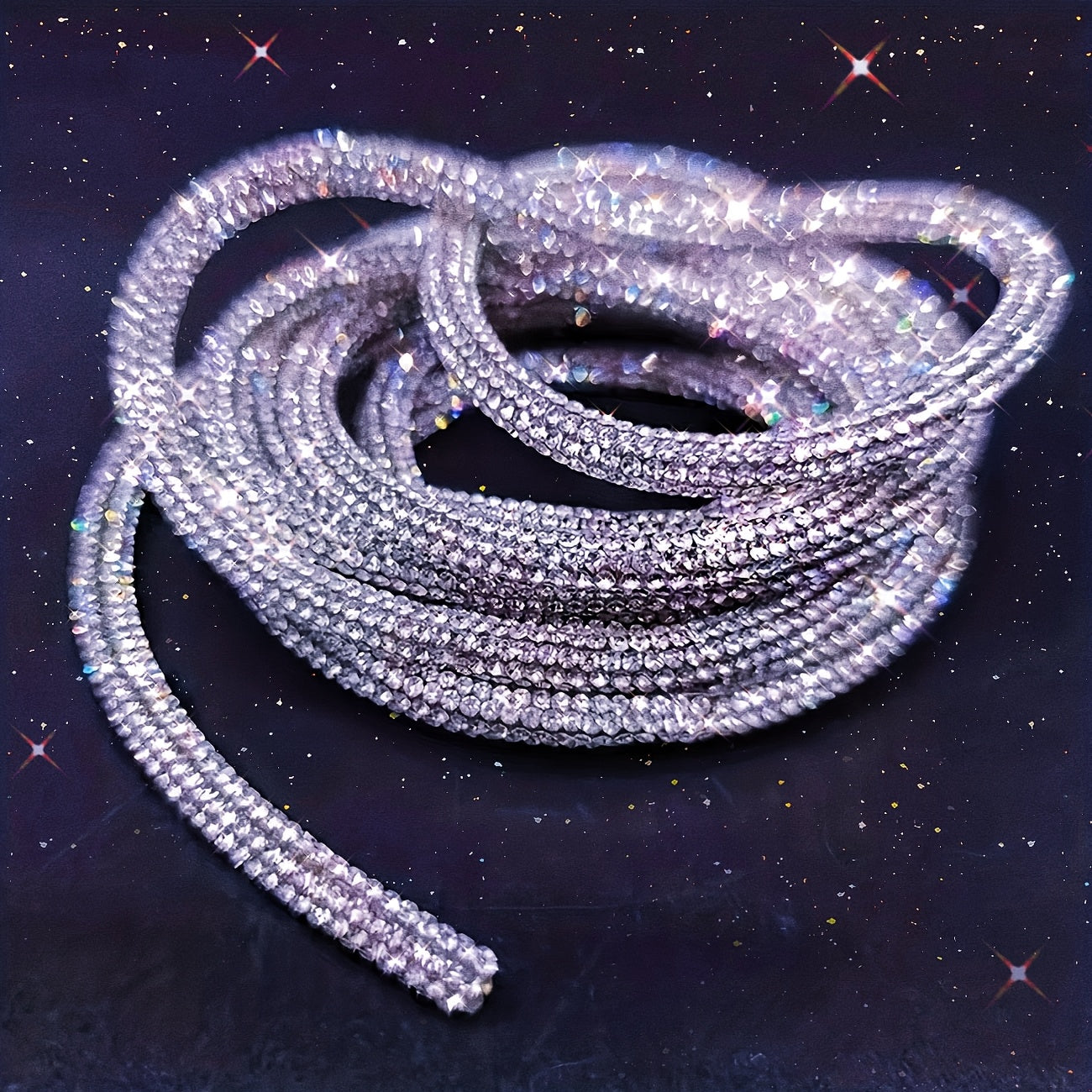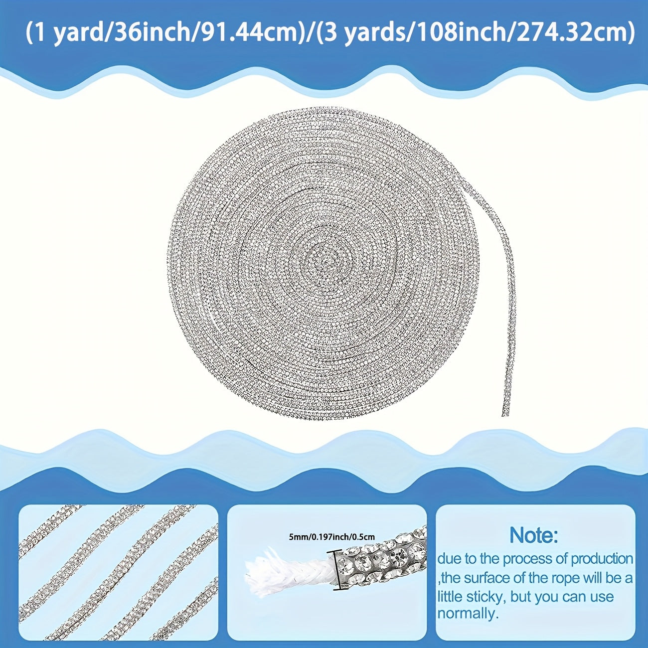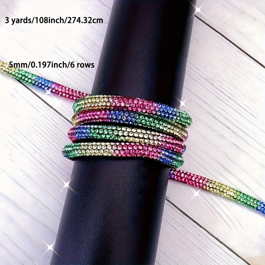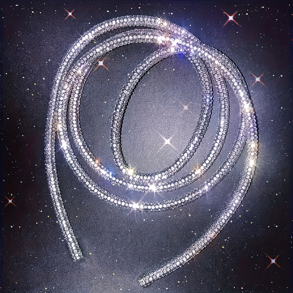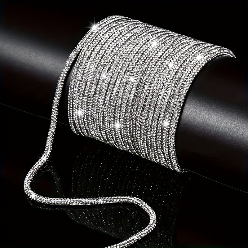 This high-quality rhinestone rope is 2.74 meters long and features 6 rows of stunning rhinestones. It is ideal for adding a touch of glamour to clothing, shoes, hats, bags, and crafts. Perfect for room decoration!