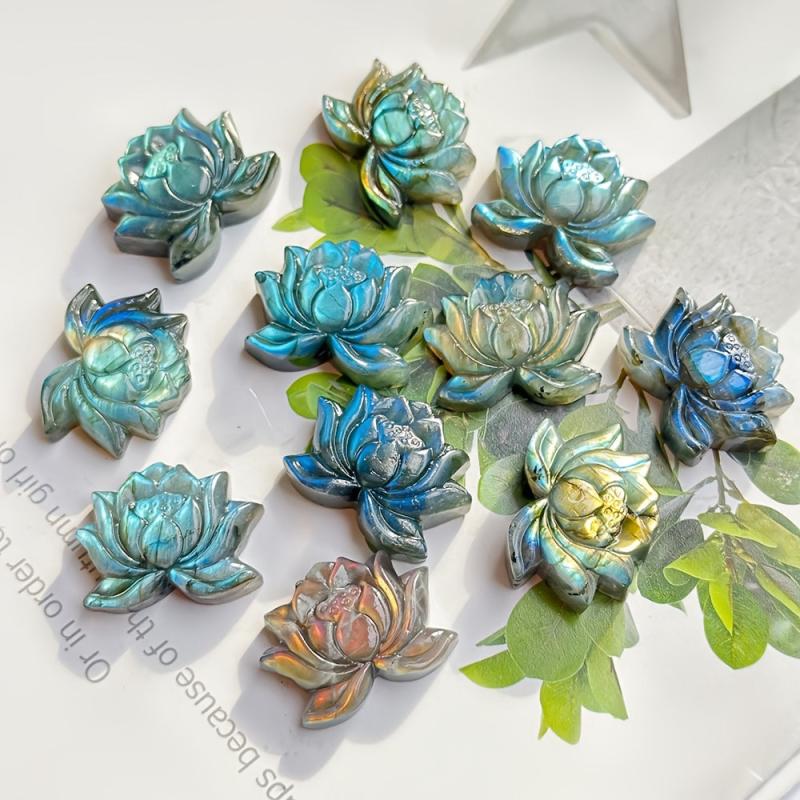 Bring elegance and positive energy to your home with this beautifully crafted Labradorite Lotus faux gemstone. Ideal for Christmas, Halloween, and Valentine's Day decorations.
