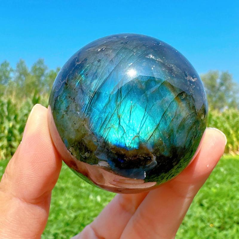Bring the magic of Labradorite into your space with this polished crystal sphere. Perfect as a unique birthday gift or for special occasions like holidays, Christmas, Halloween, Easter, and Thanksgiving.