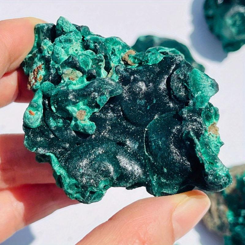 Explore the beauty of this Malachite raw specimen showcasing vibrant Chrysocolla crystal cluster with unique inclusions. Display it with the hexagonal golden tone stand for a bohemian touch.