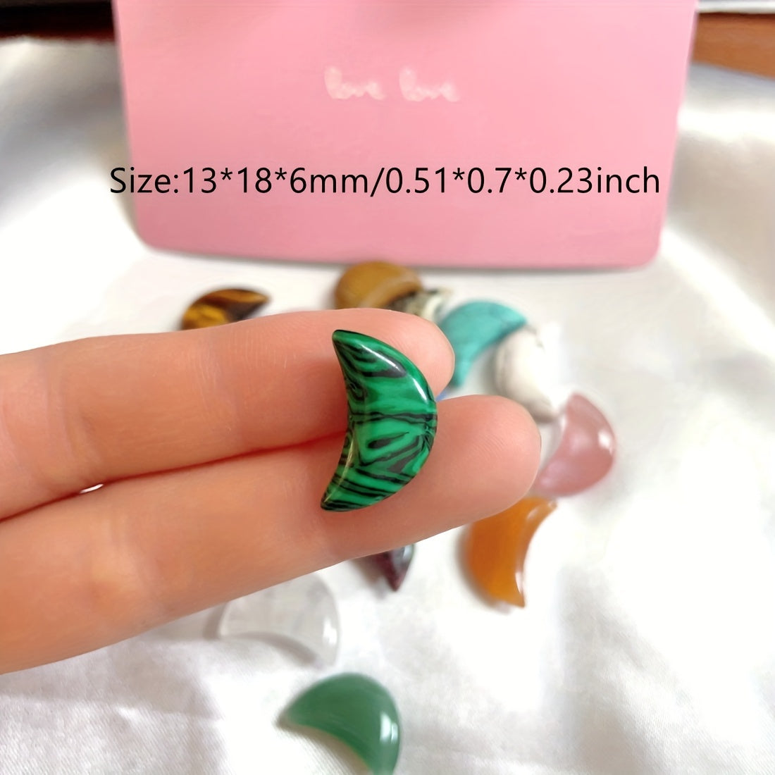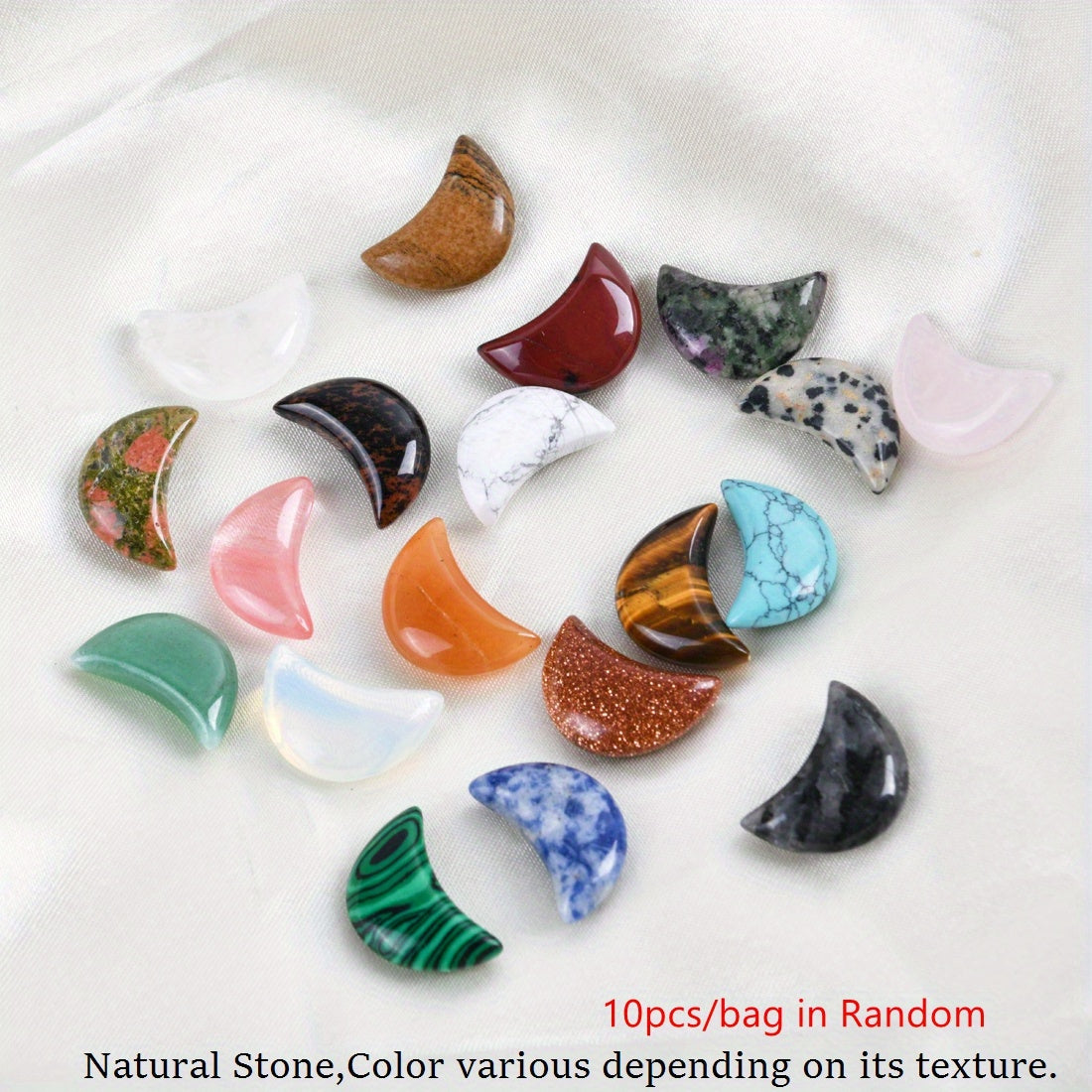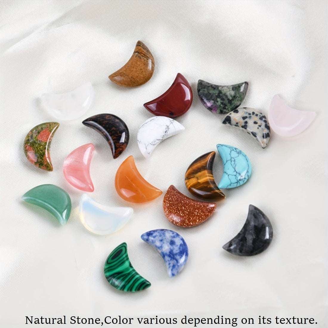 Add these mini moon-shaped stone pendants to your meditation space for a touch of natural beauty and balance. Each pendant is unique and random in color and pattern.