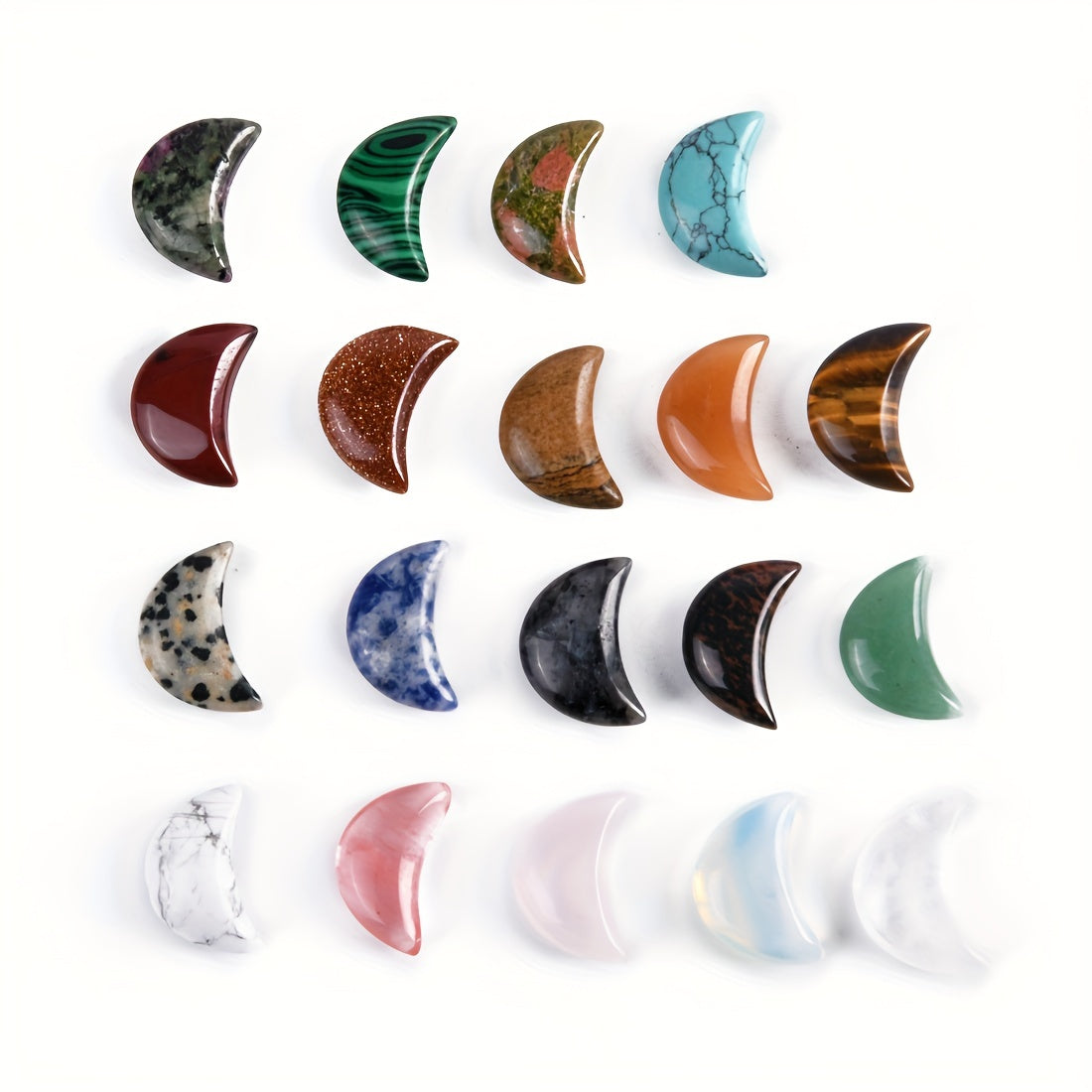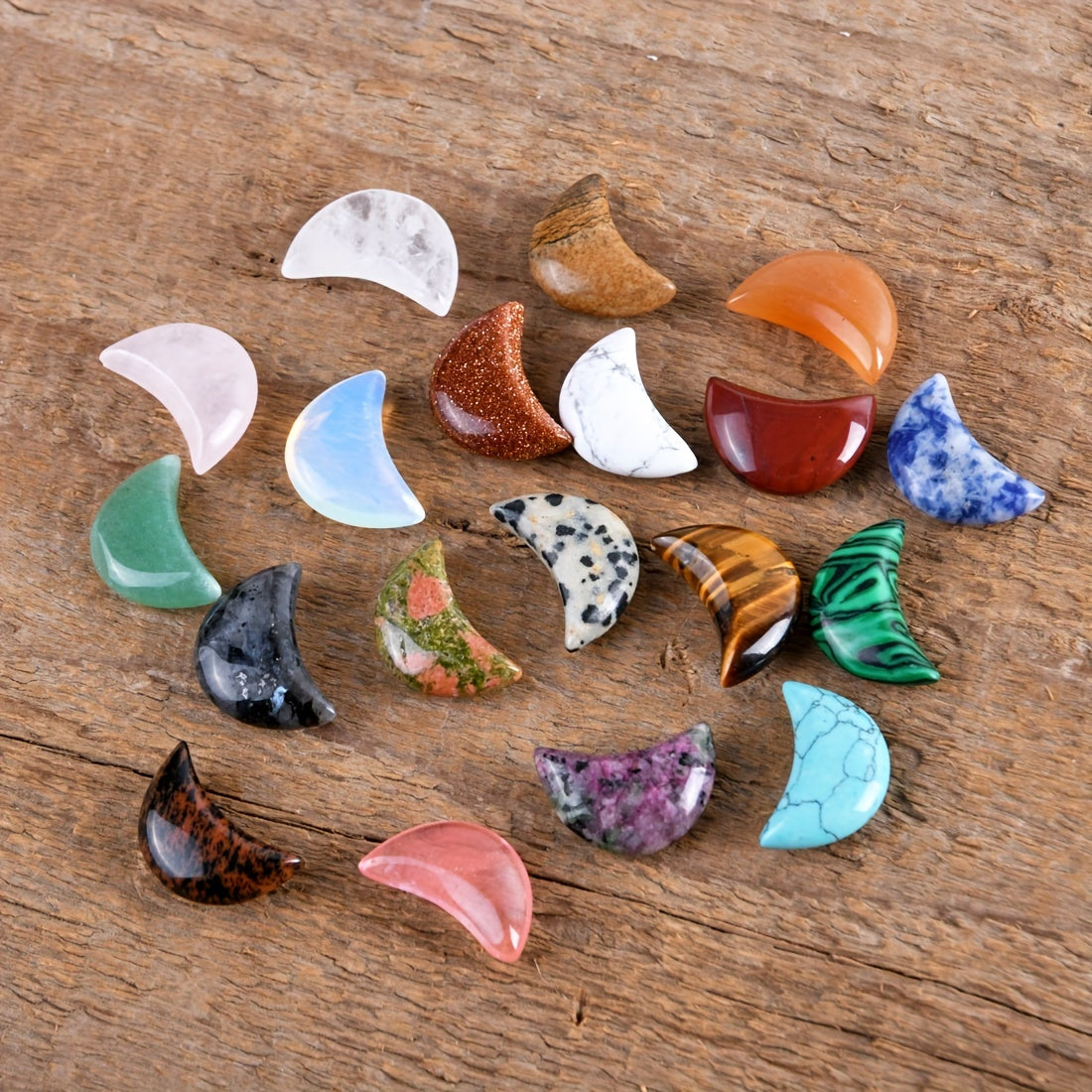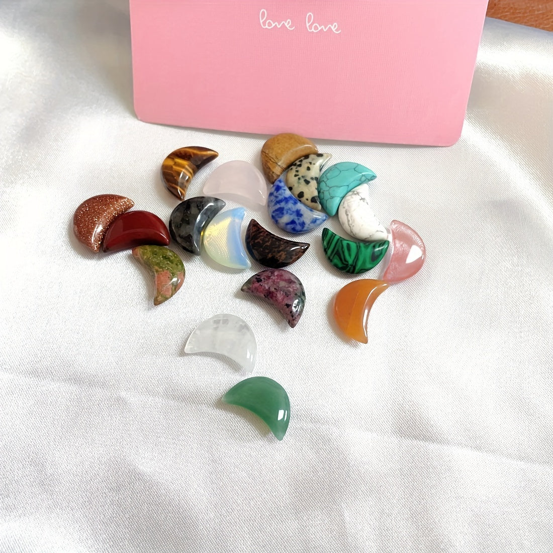 Add these mini moon-shaped stone pendants to your meditation space for a touch of natural beauty and balance. Each pendant is unique and random in color and pattern.