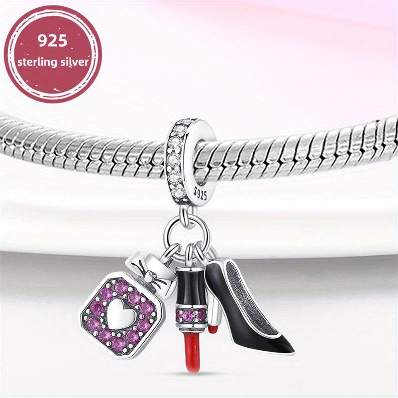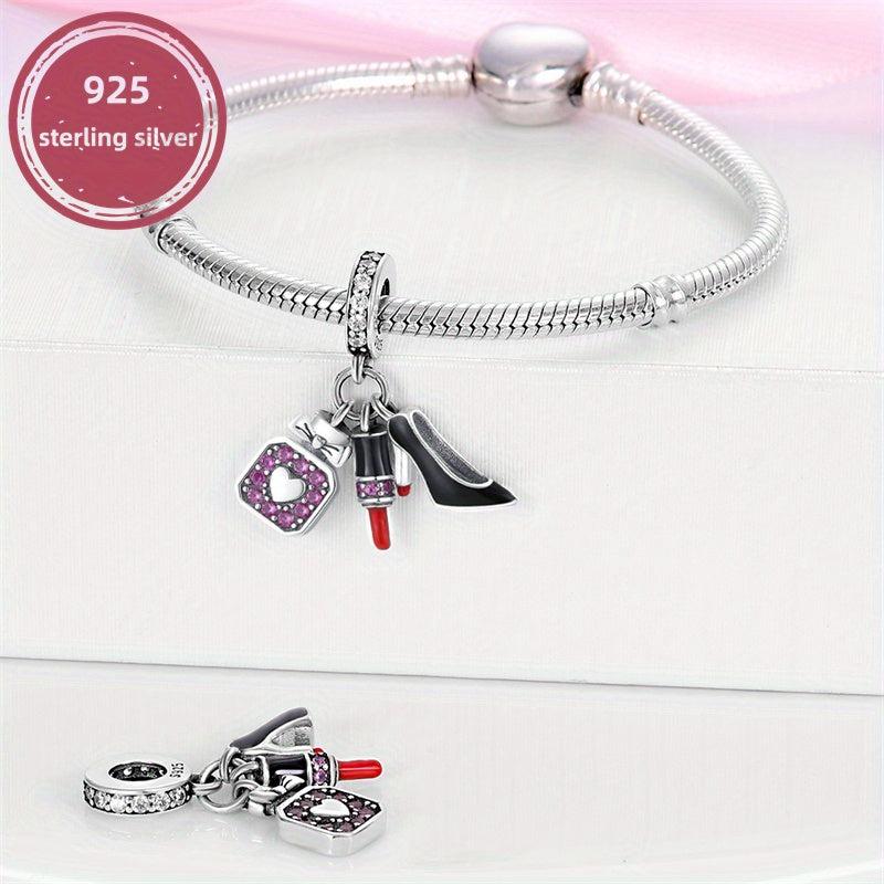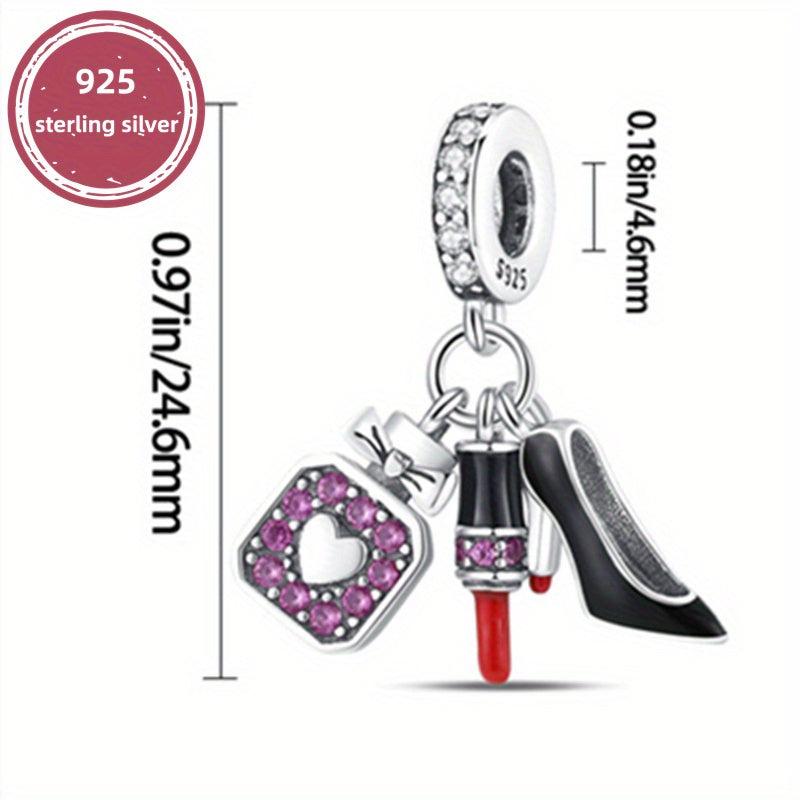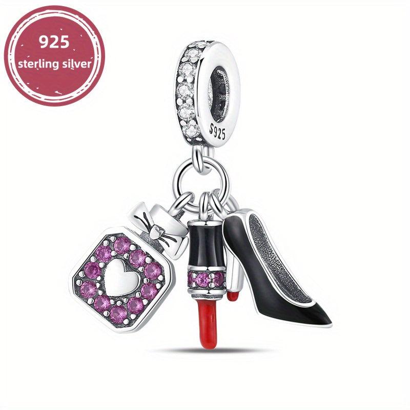 Dieses dreiteilige Anhänger-Set bietet schillernde High Heels und Lippenstiftdesigns. Perfekt für tägliche Verschleiß oder Feiertage. Ideal, um Ihr eigenes Armband oder Ihre eigene Halskette zu erstellen.