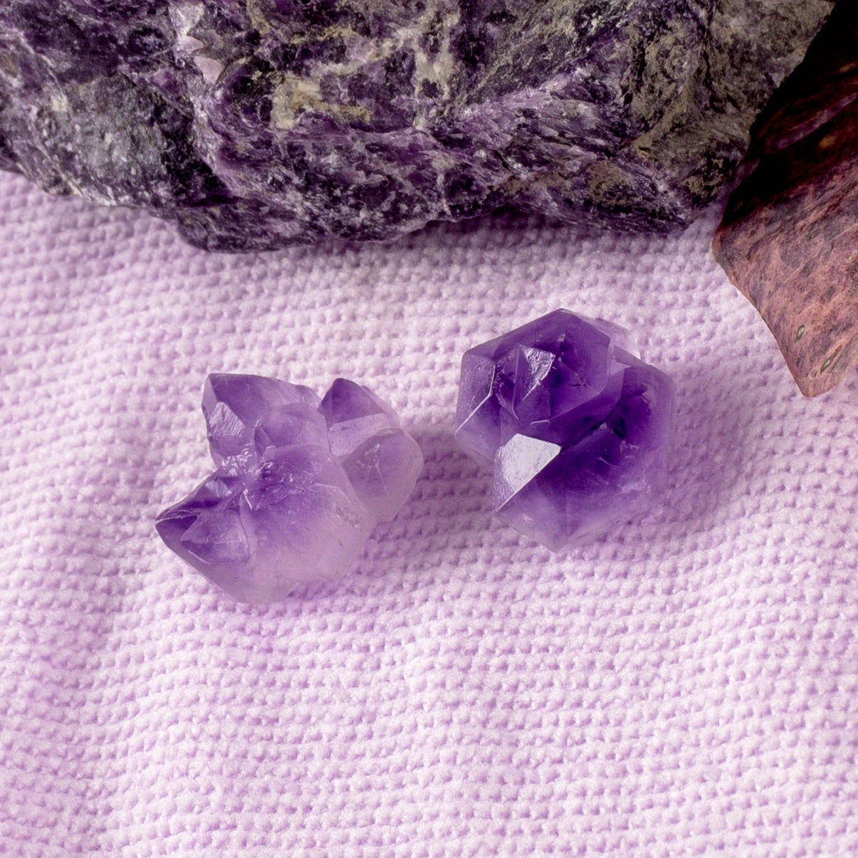 These healing stone amethyst charms are perfect for energy balance, chakra healing, and jewelry making. Each piece is a unique irregular shape.