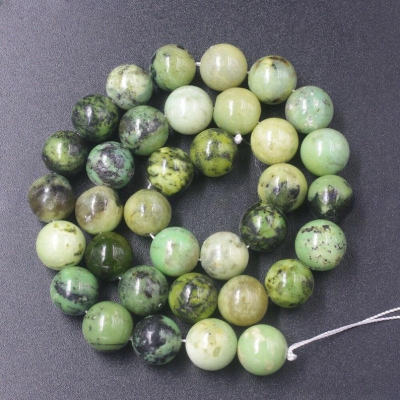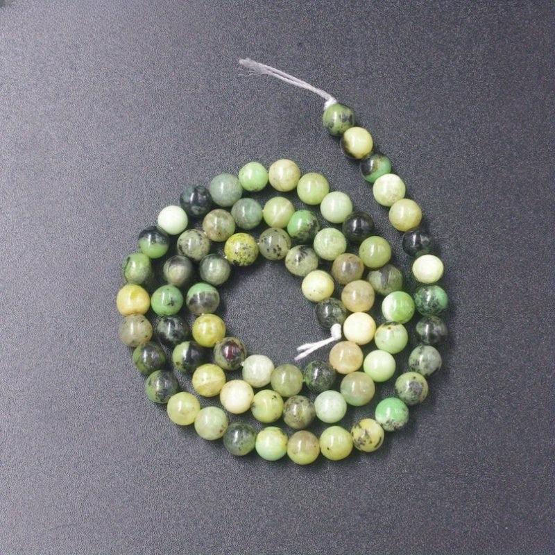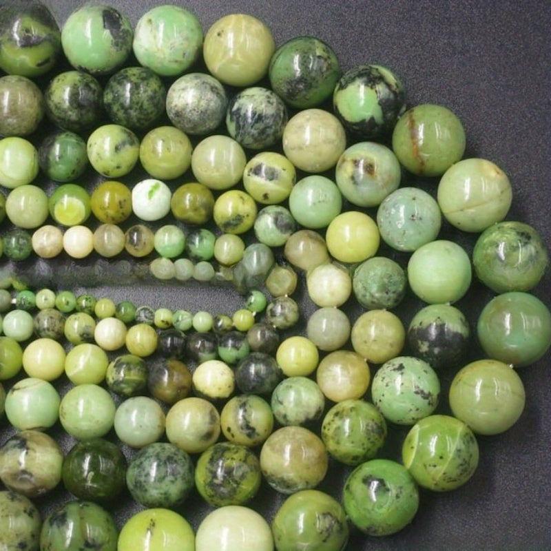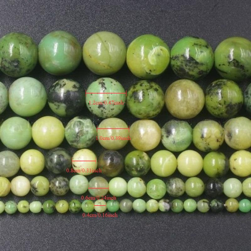 Get a string of natural Australian Chrysoprase gemstones in sizes 4mm, 6mm, 8mm, 10mm, and 12mm. Perfect for creating unique jewelry pieces.