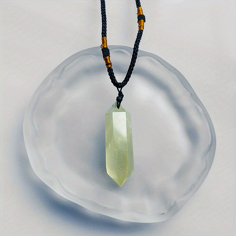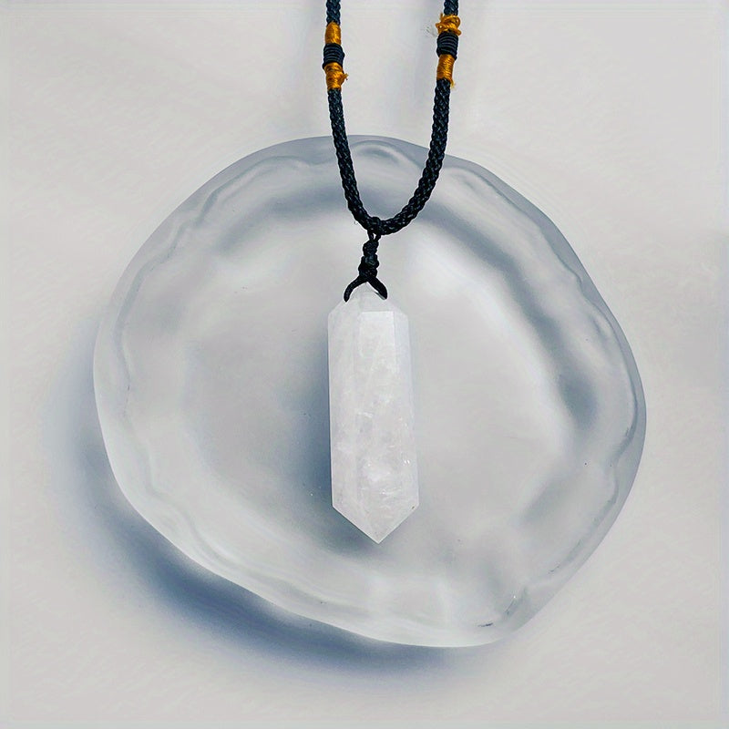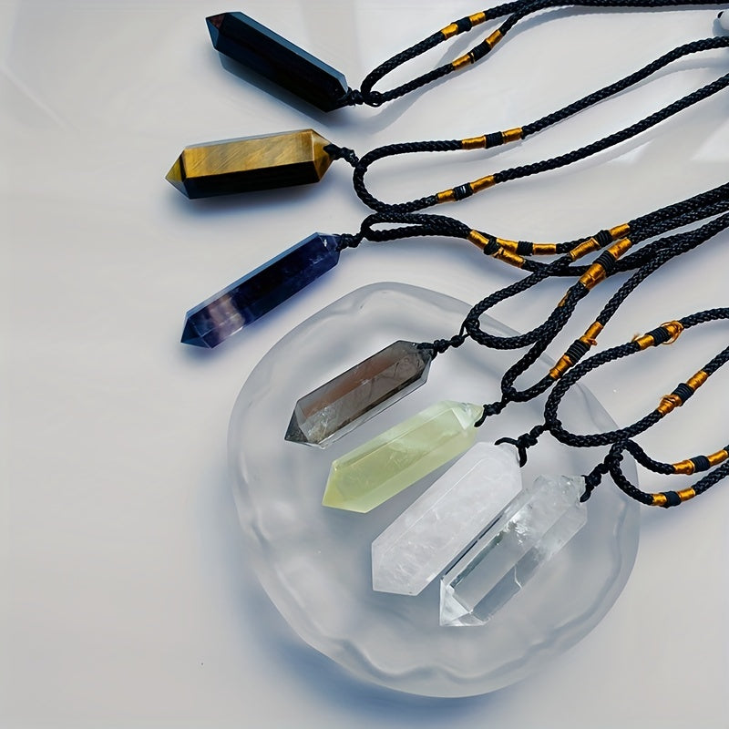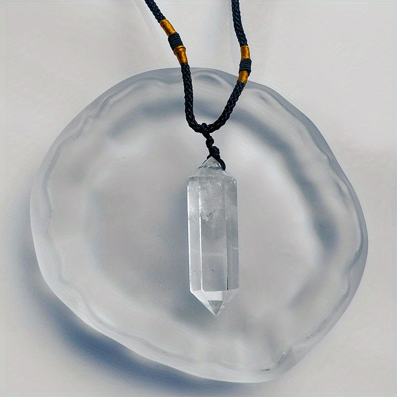 This necklace features a natural crystal double pointed pillar hexagonal pendant that brings positive energy and healing properties. Perfect for crystal stone jewelry enthusiasts.