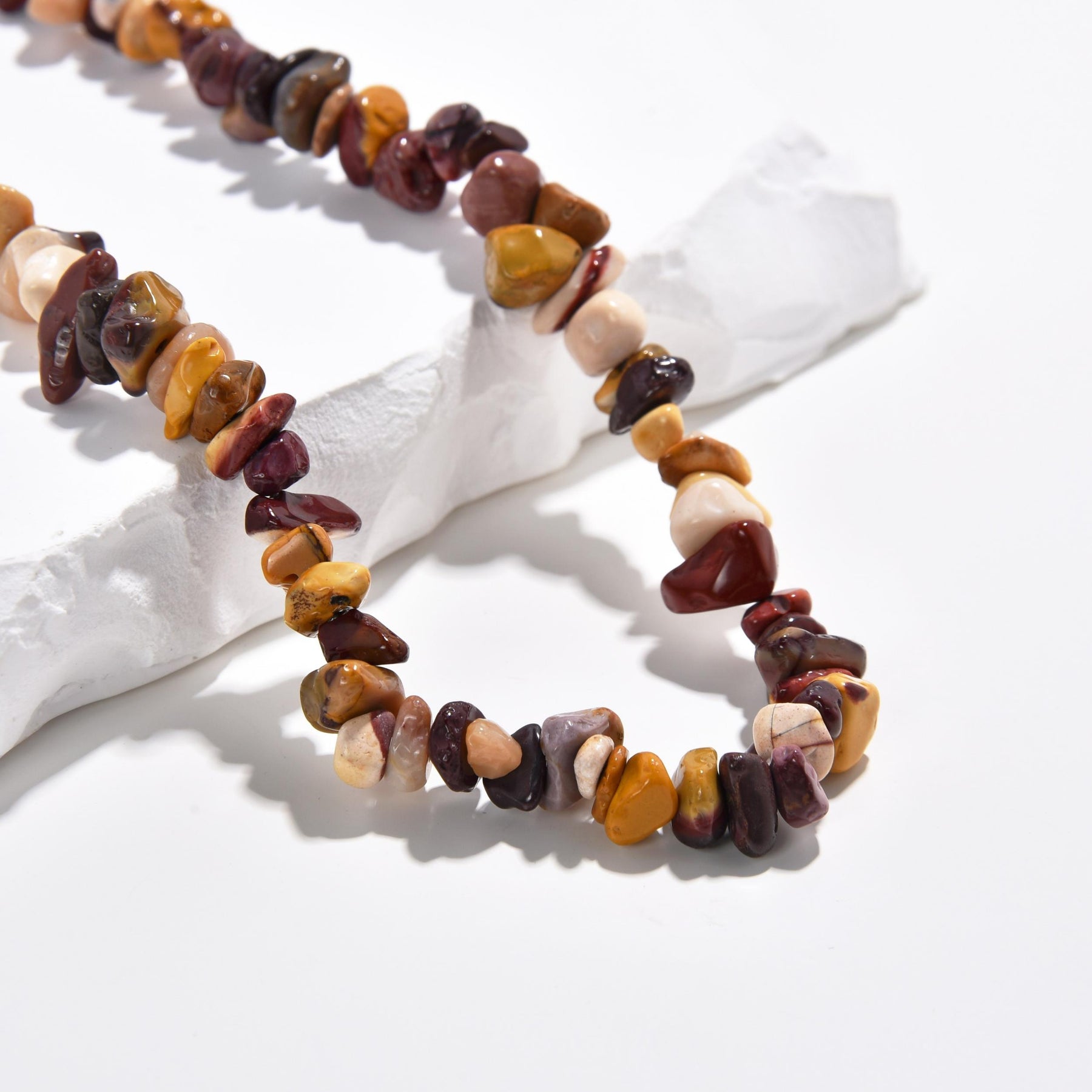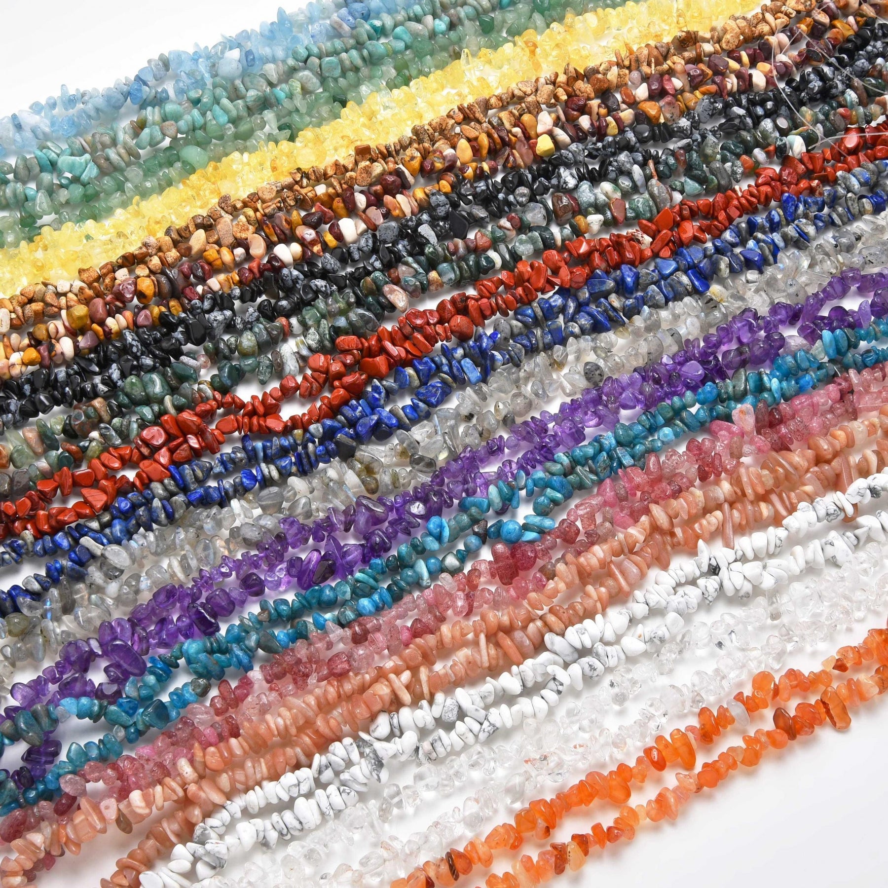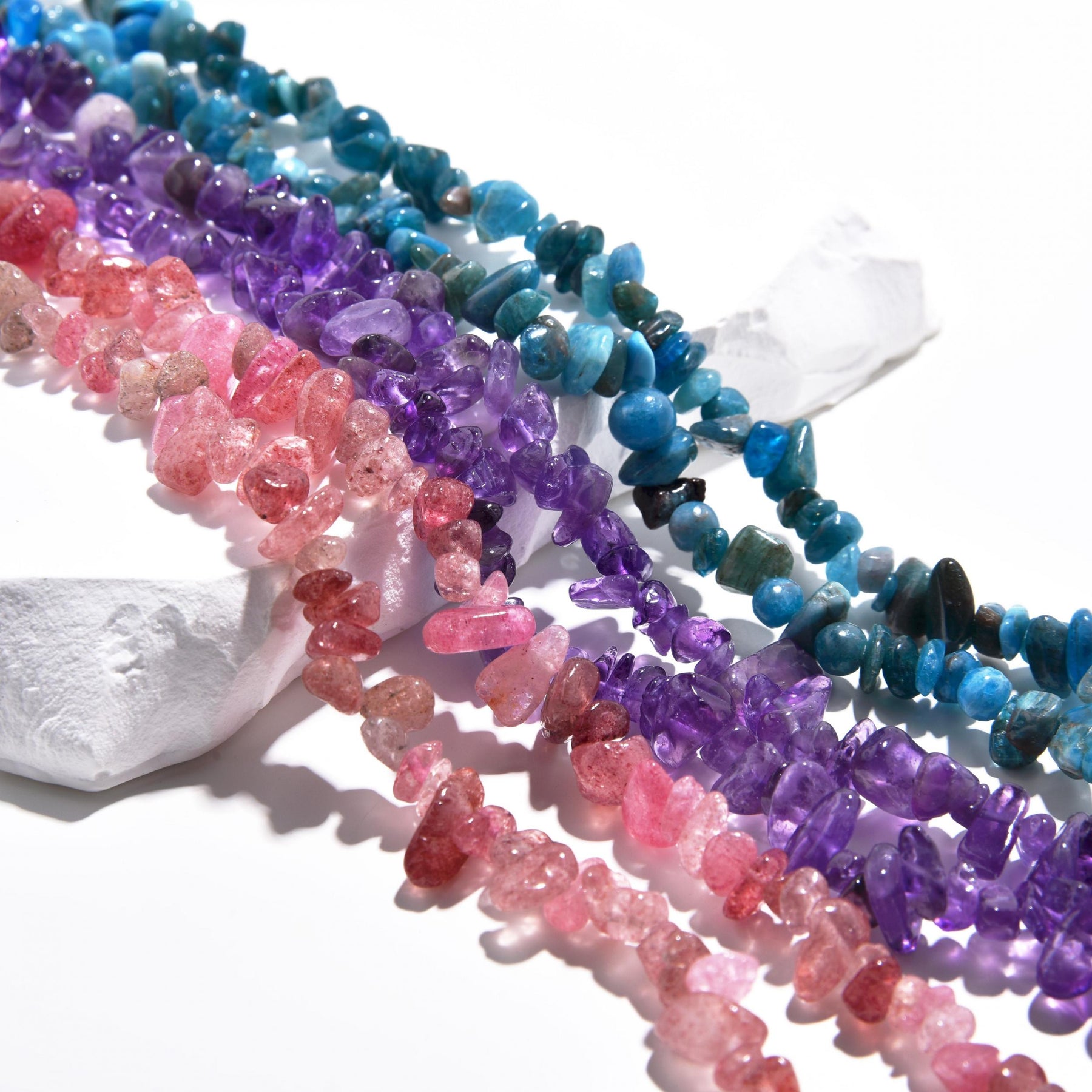 Explore the beauty of natural crystal with this long chain of amethyst, red strawberry, and green beads. Perfect for creating your own unique jewelry pieces.