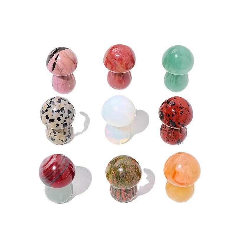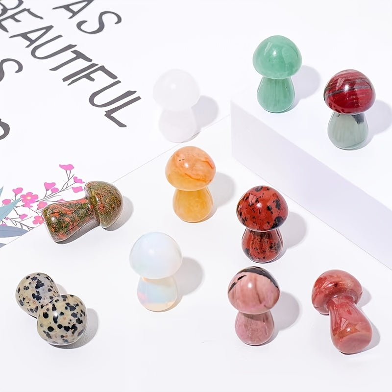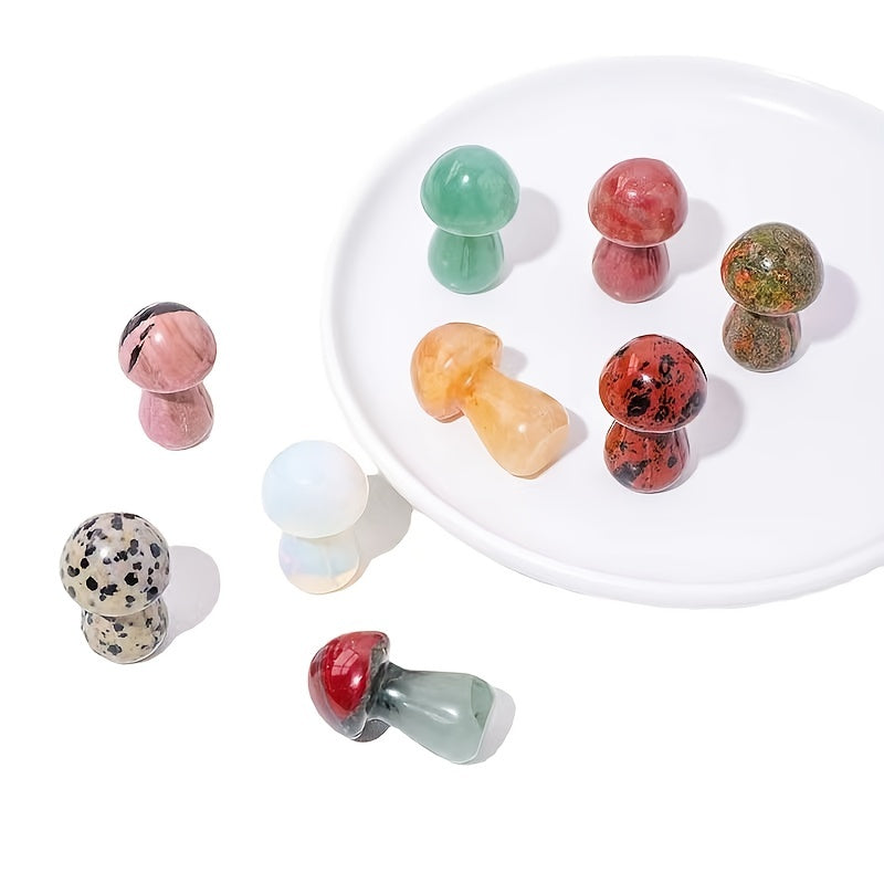 Add a touch of natural beauty with this crystal mushroom ornament. Perfect for DIY carving projects or as a decoration in your home. Each piece is unique and handcrafted with care.